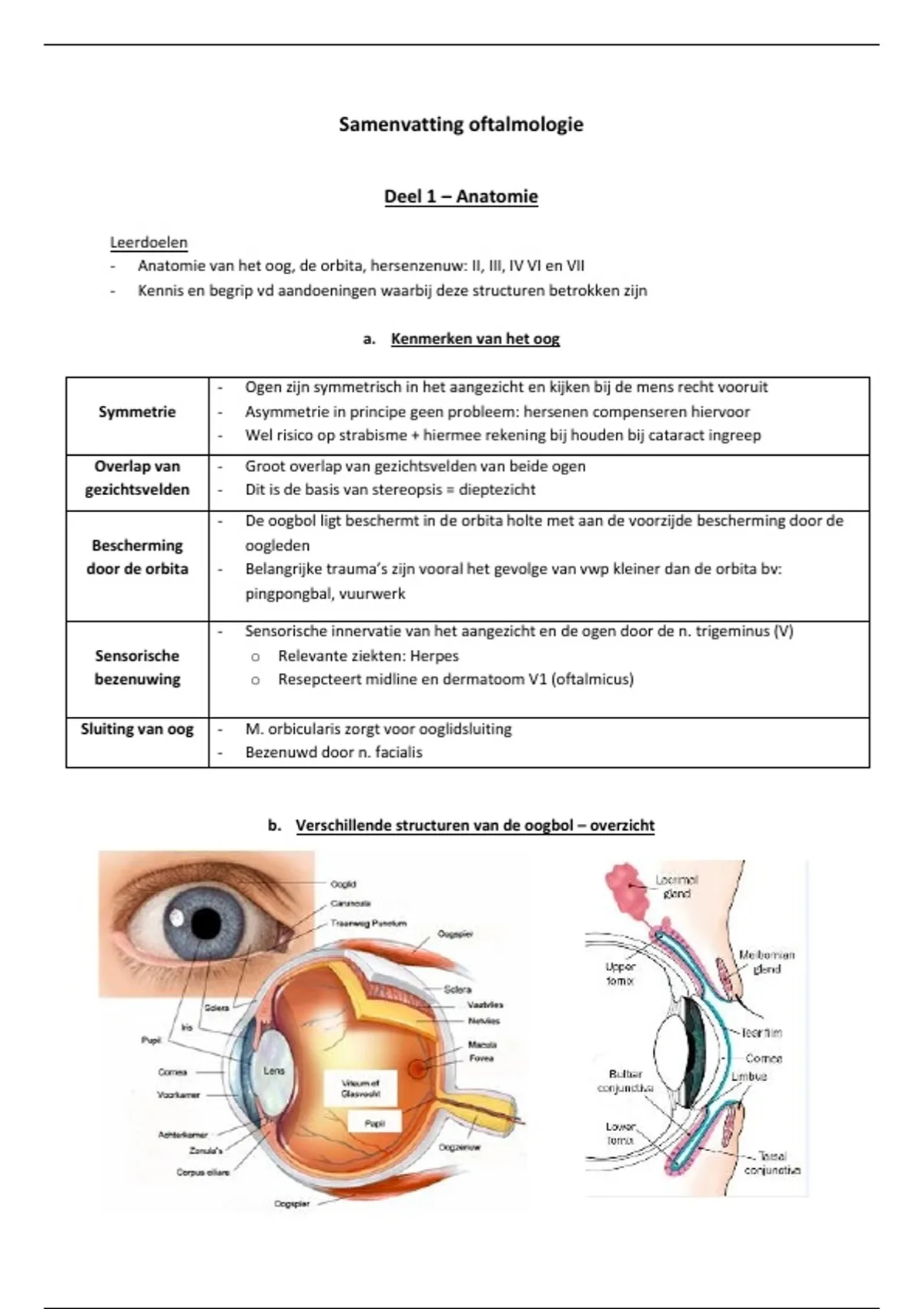 b. Verschillende structuren van de oogbol – overzicht