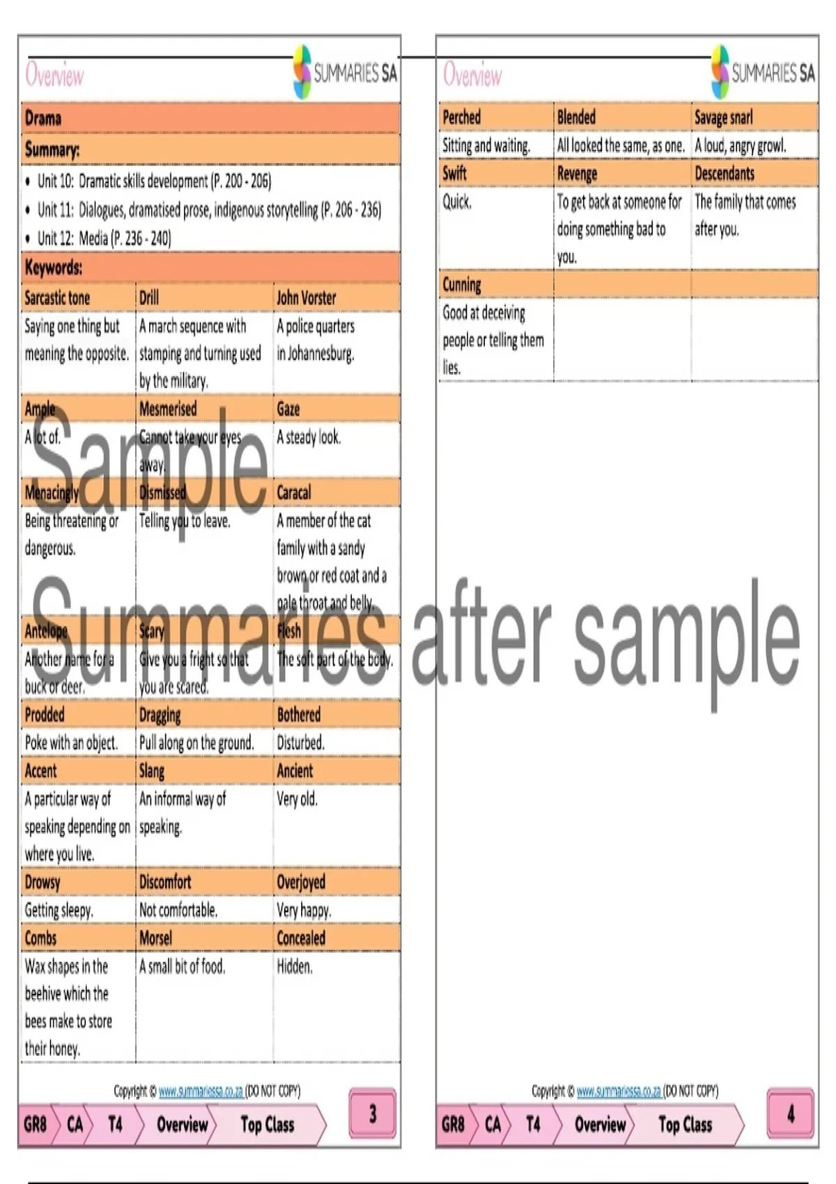 Summary Grade 8 Creative Arts (CA) Summaries Term 4 (Top Class)
