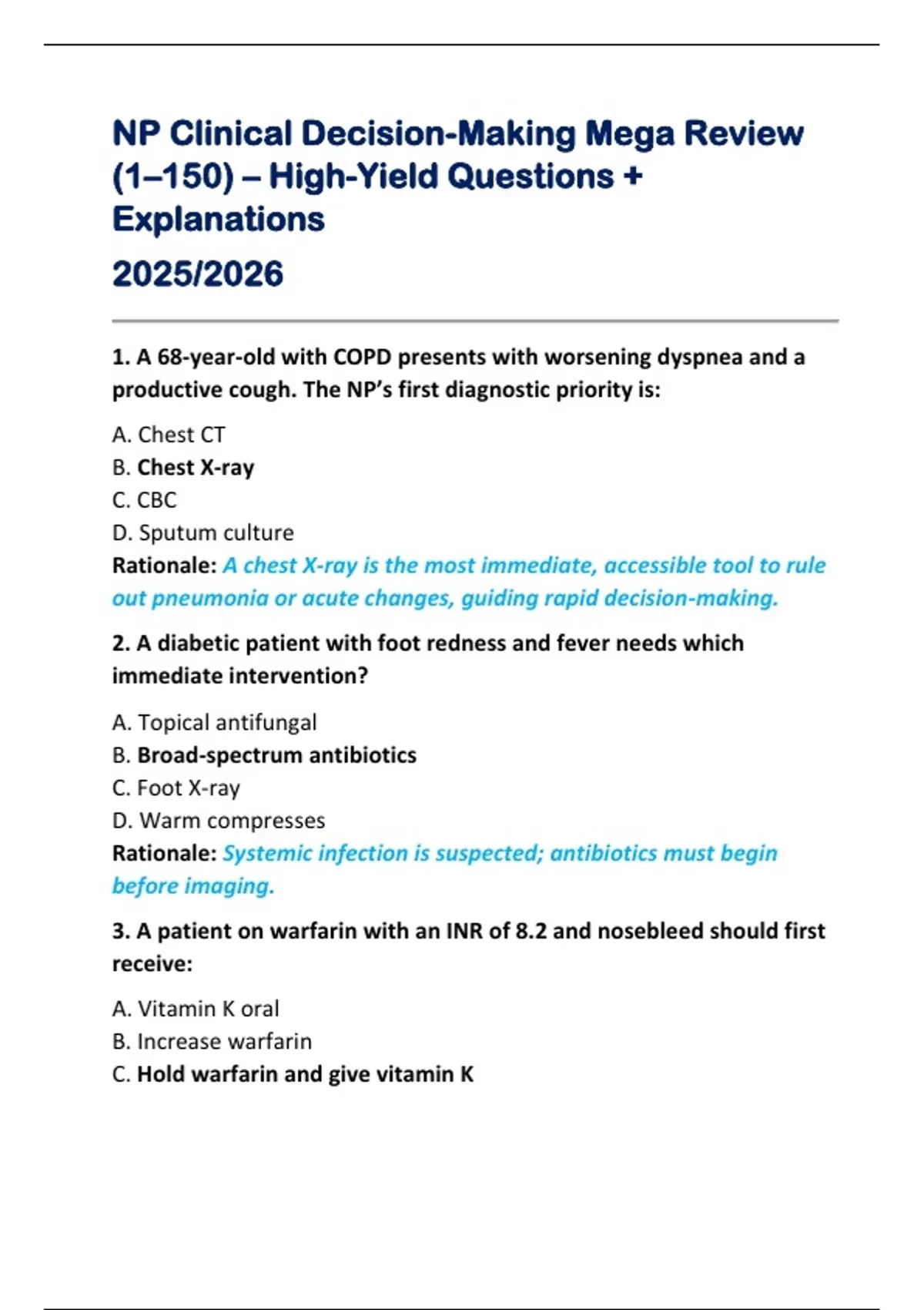 NP Clinical Decision-Making Mega Review (1–150) – High-Yield Questions + Explanations 2025/2026