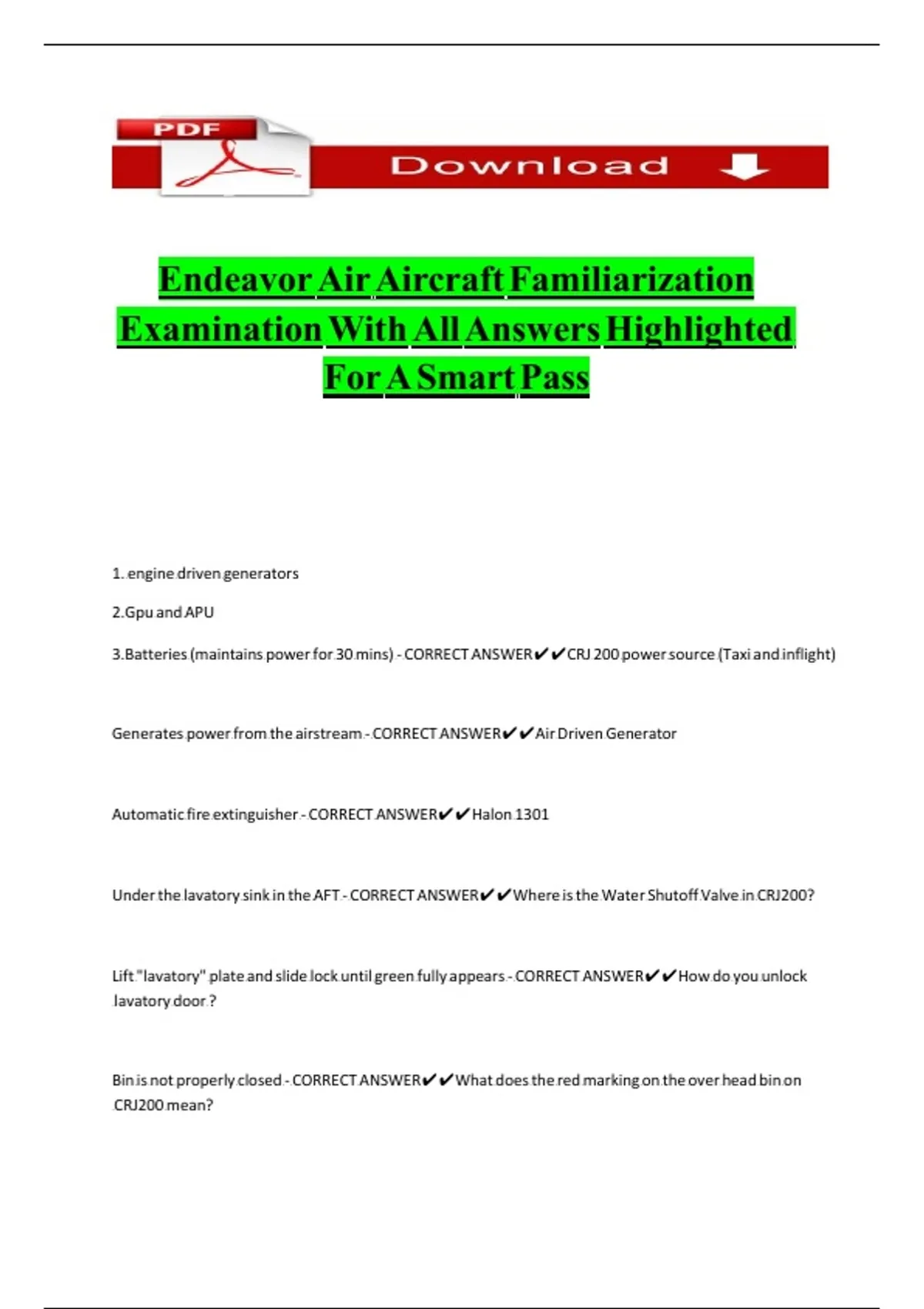 3.Batteries (maintains power for 30 mins) - CORRECT ANSWER✔✔CRJ 200 power source (Taxi and inflight)