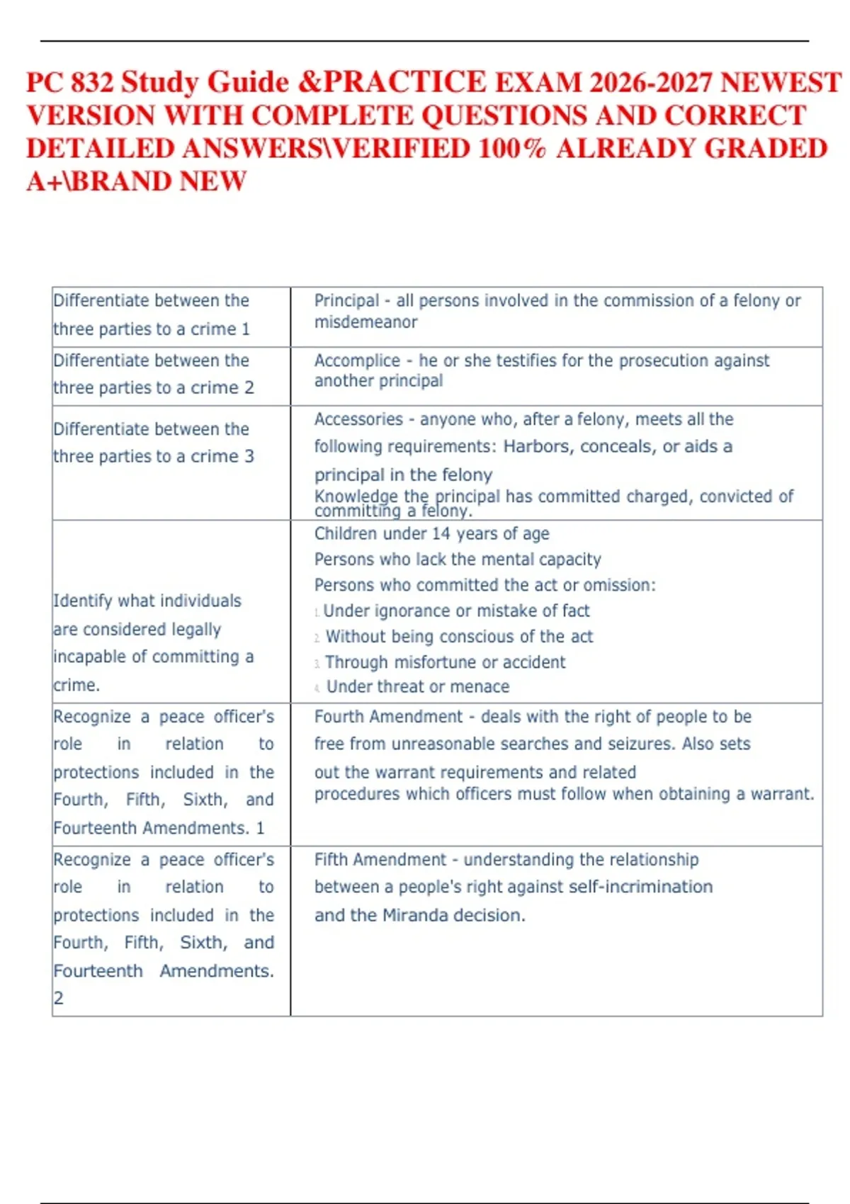 PC 832 Study Guide &PRACTICE EXAM NEWEST VERSION WITH COMPLETE QUESTIONS AND CORRECT DETAILED ANSWERSVERIFIED 100% ALREADY GRADED A+BRAND NEW