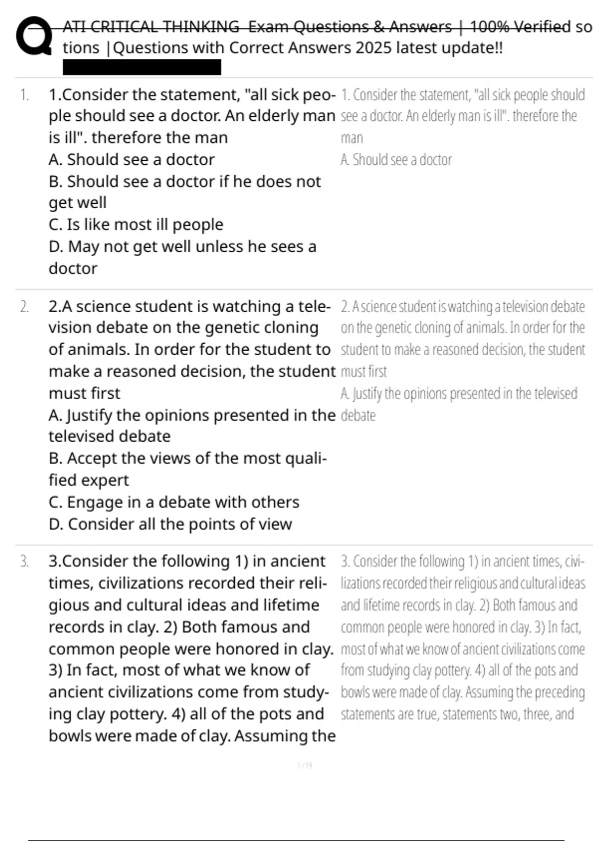 , ATI CRITICAL THINKING Exam Questions & Answers | 100% Verified so