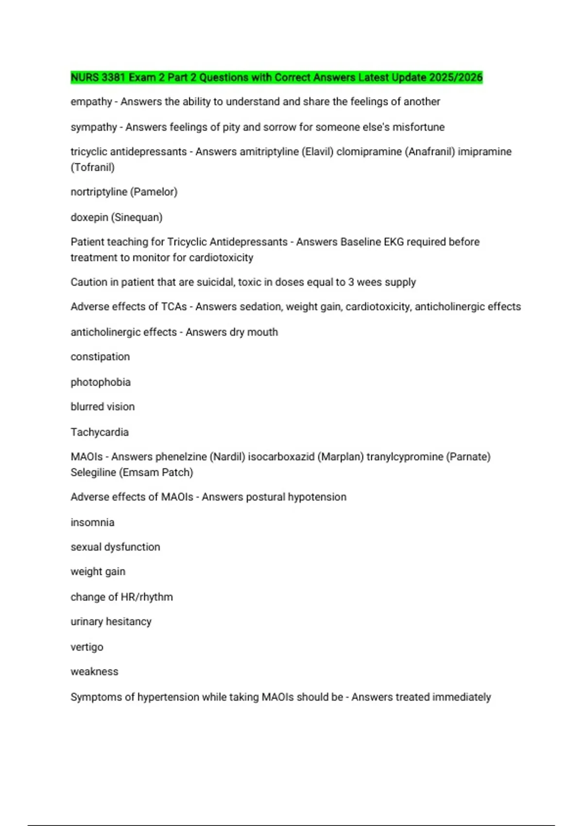 Patient teaching for Tricyclic Antidepressants - Answers Baseline EKG required before