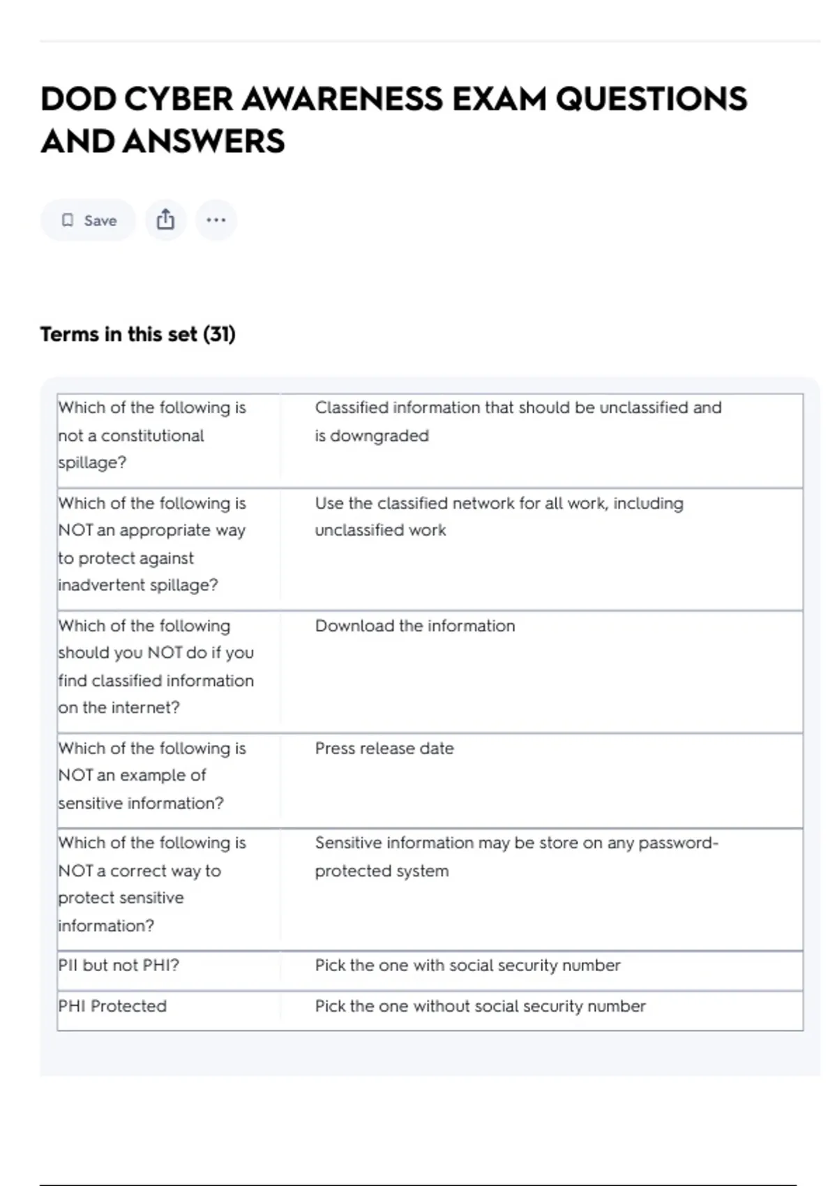 DOD CYBER AWARENESS EXAM QUESTIONS