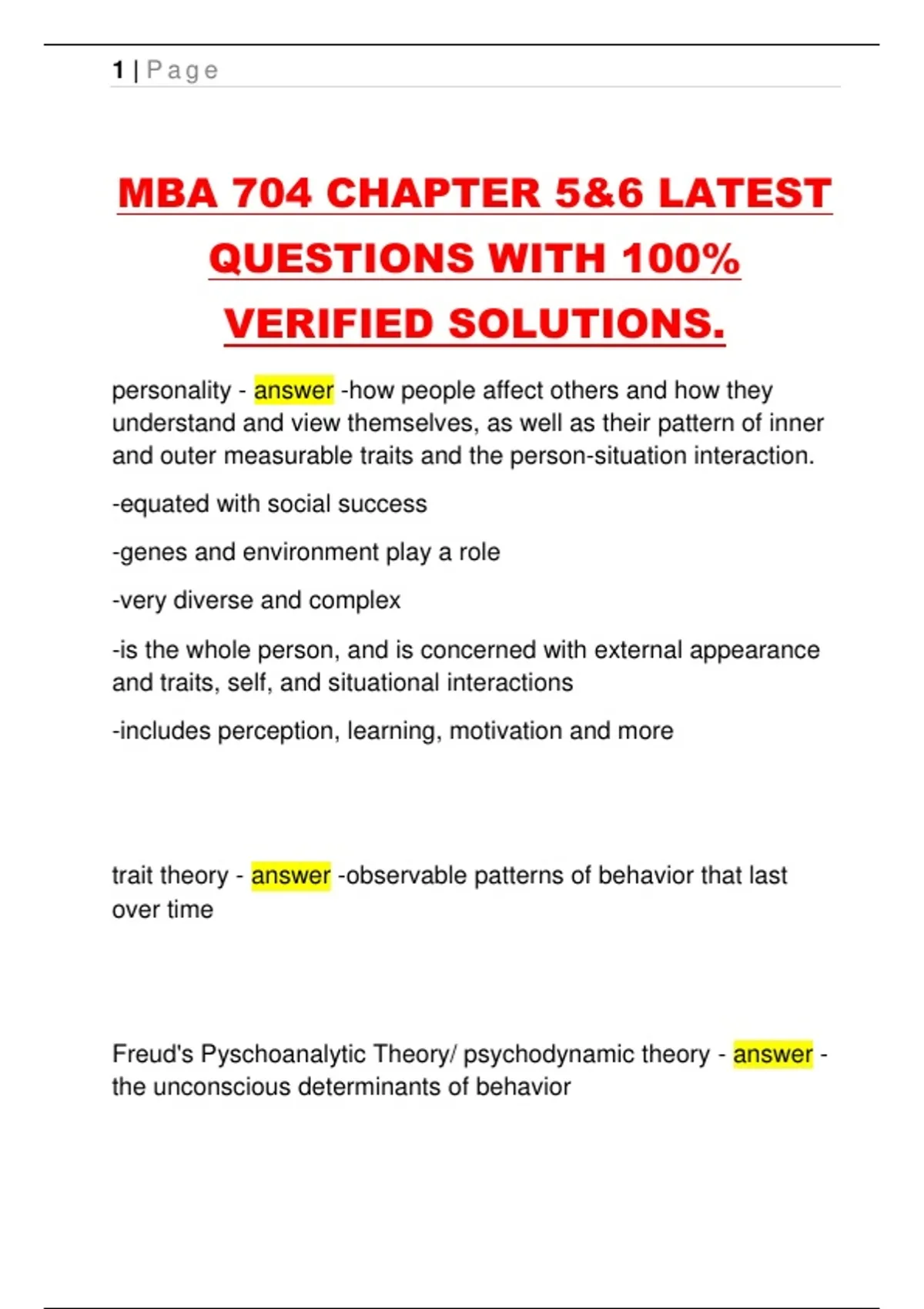 MBA 704 CHAPTER 5&6 LATEST QUESTIONS WITH 100% VERIFIED SOLUTIONS.