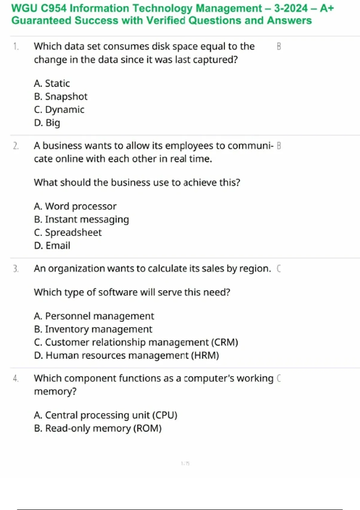 WGU C954 Information Technology Management – 3-2024 – A+ Guaranteed Success with Verified Questions and Answers