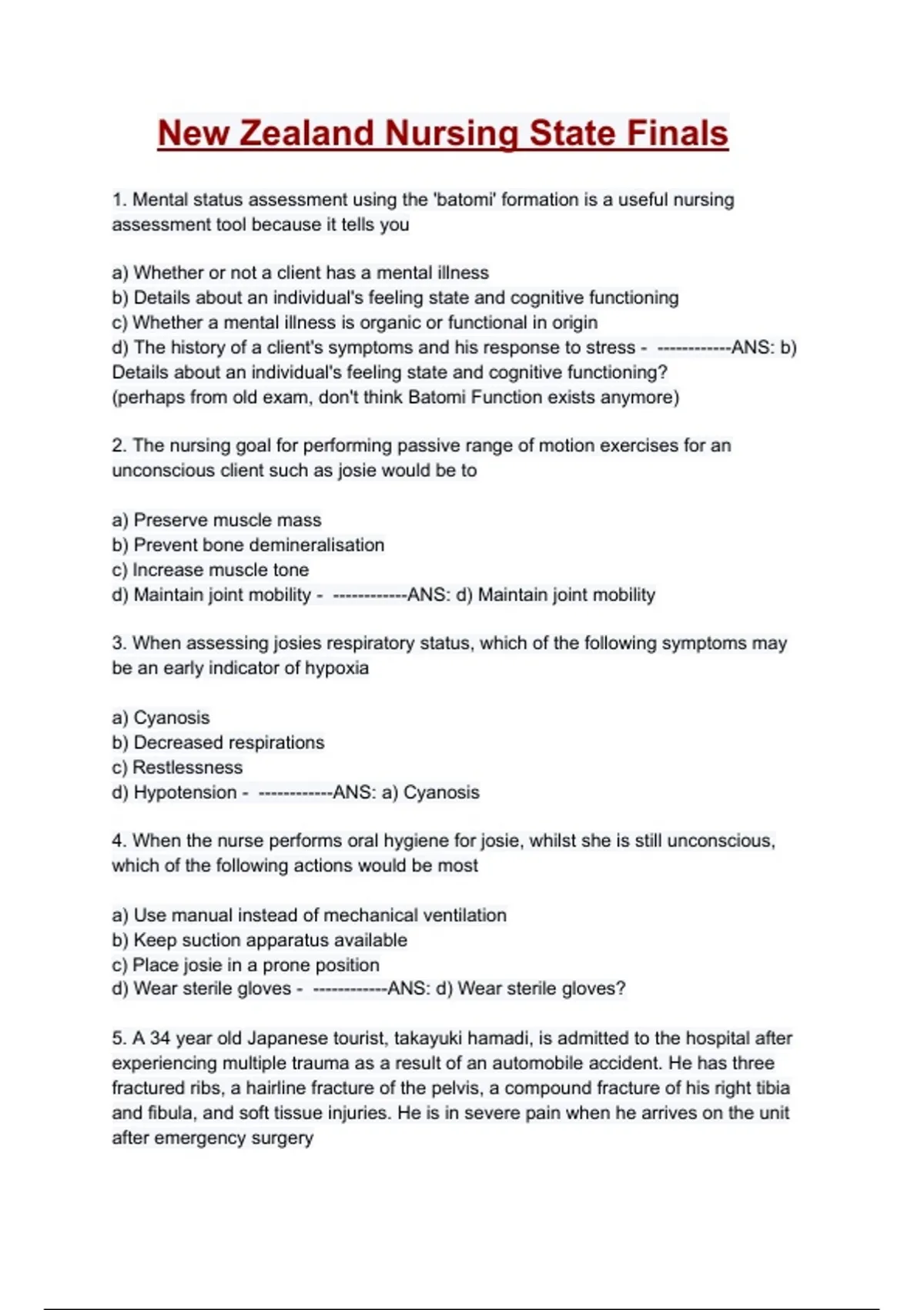 New Zealand Nursing State Finals Questions and Correct Answers (100% VERIFIED)| 2025/2026