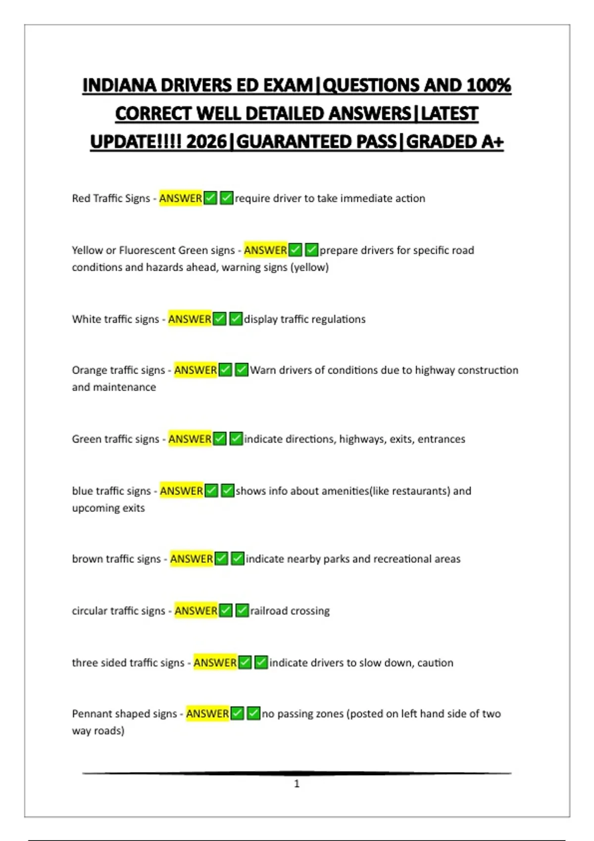 Yellow or Fluorescent Green signs - ANSWER prepare drivers for specific road
