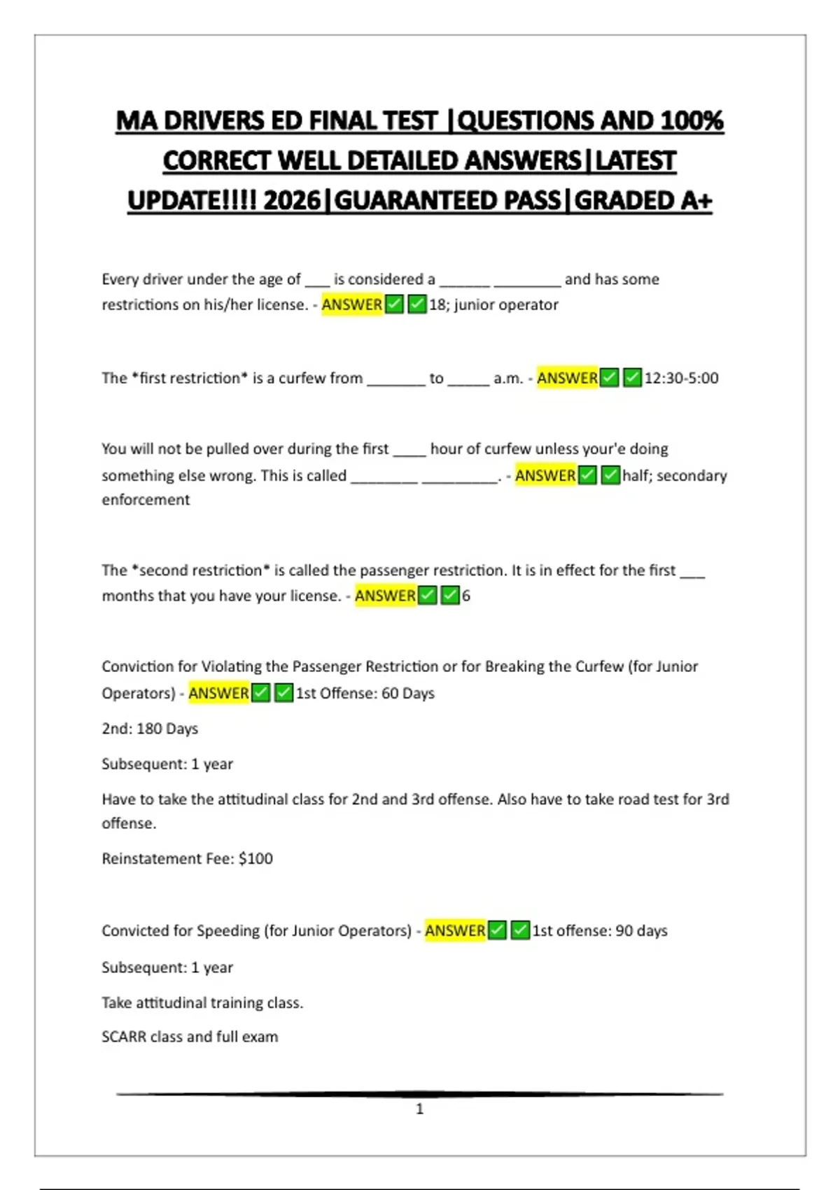 Conviction for Violating the Passenger Restriction or for Breaking the Curfew (for Junior