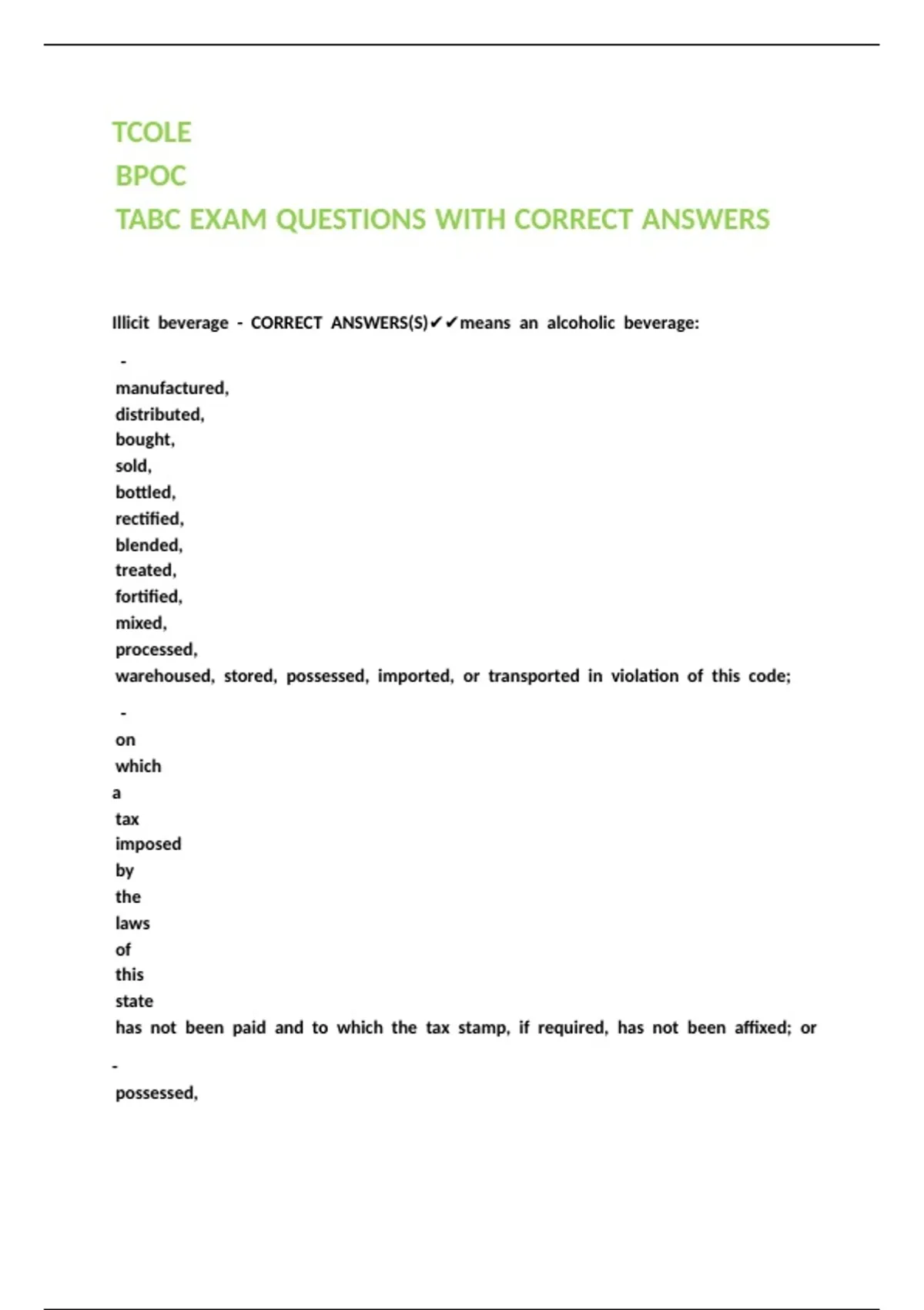 TCOLE BPOC TABC EXAM QUESTIONS WITH CORRECT ANSWERS