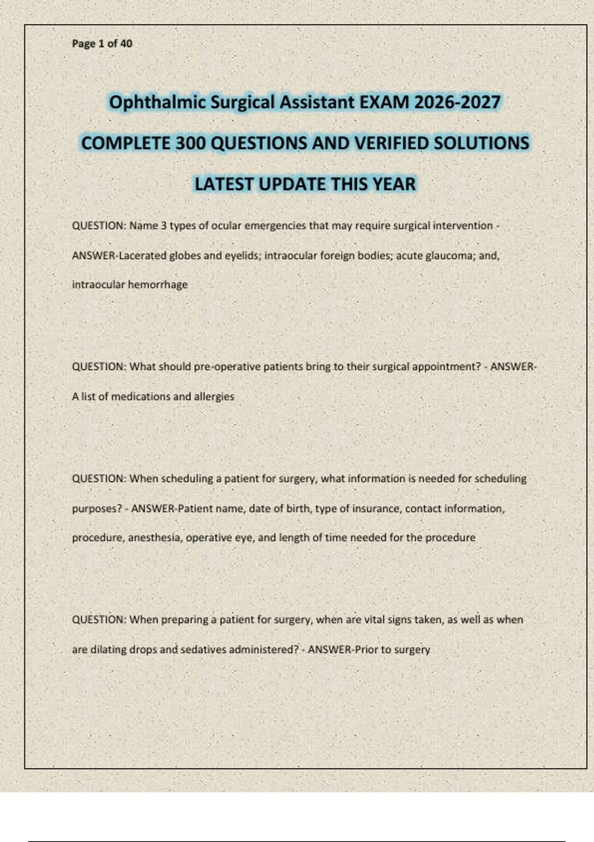Ophthalmic Surgical Assistant EXAM 2026-2027