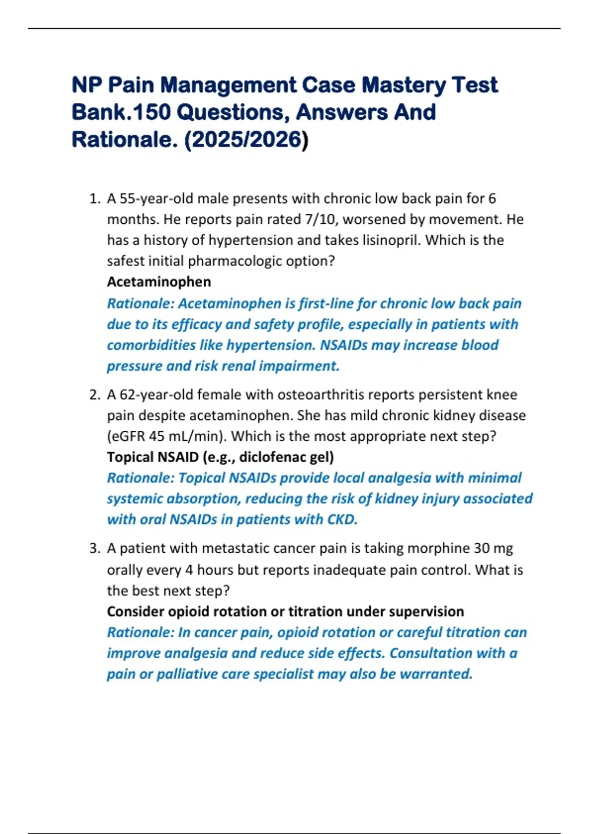 NP Pain Management Case Mastery Test