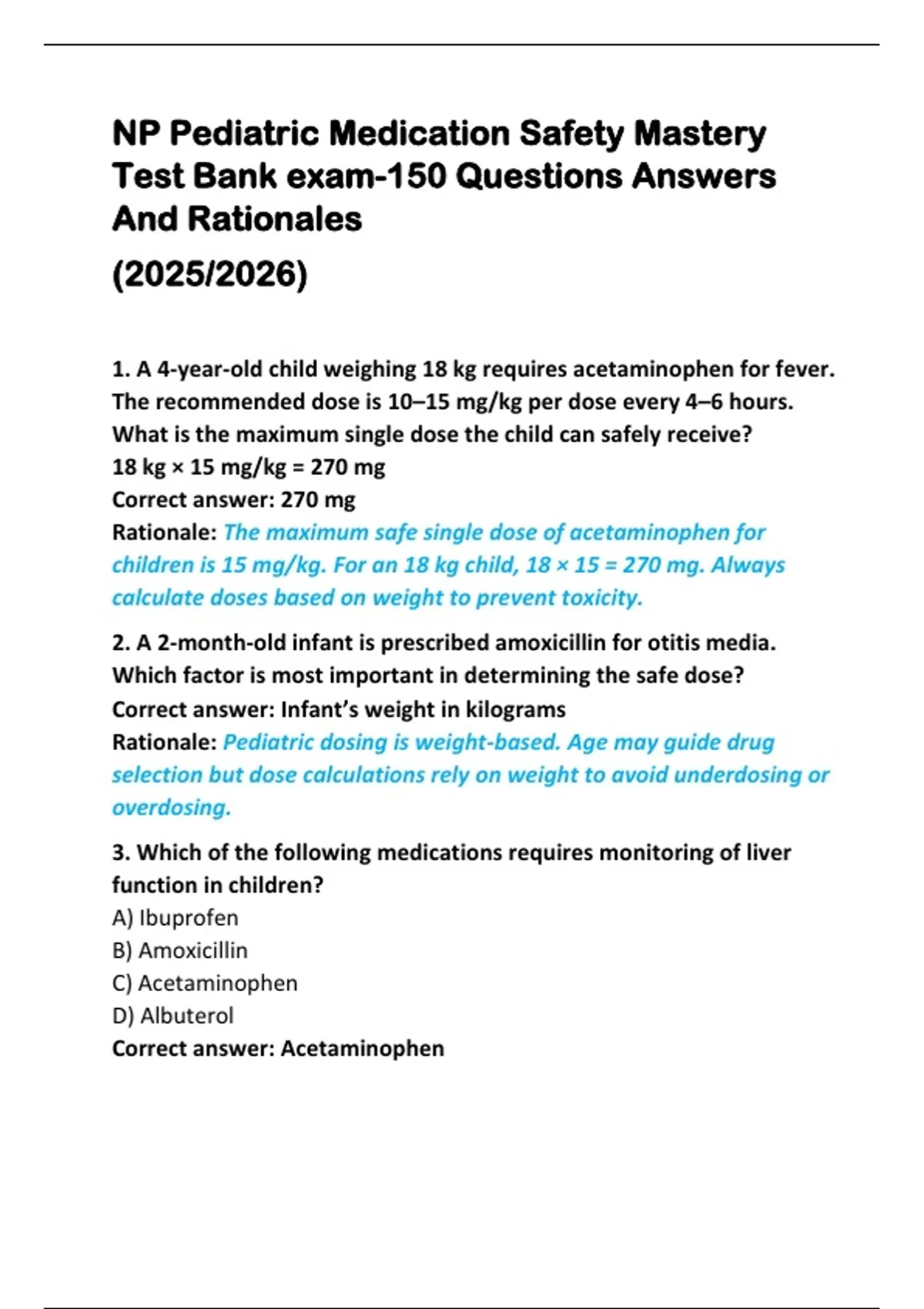 1. A 4-year-old child weighing 18 kg requires acetaminophen for fever.