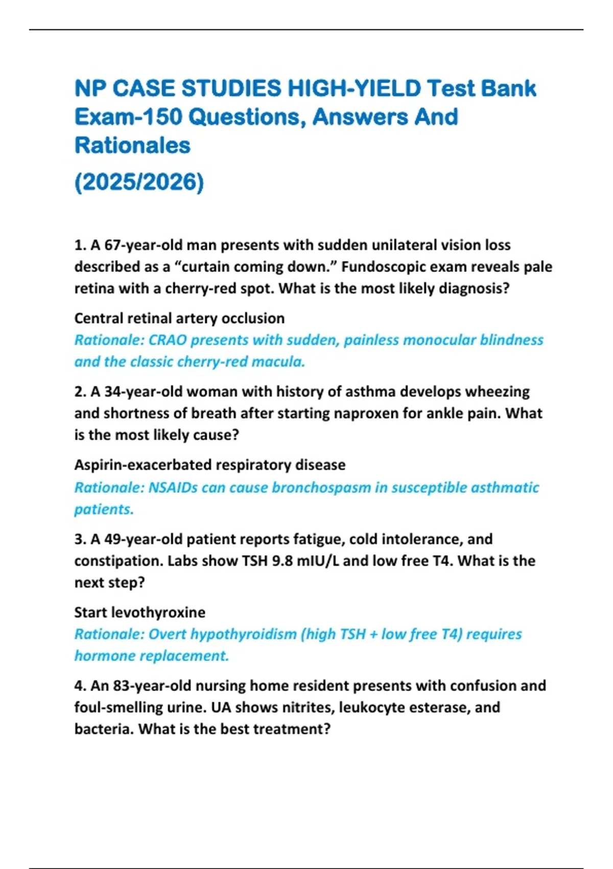 NP CASE STUDIES HIGH-YIELD Test Bank Exam-150 Questions, Answers And Rationales (2025/2026)