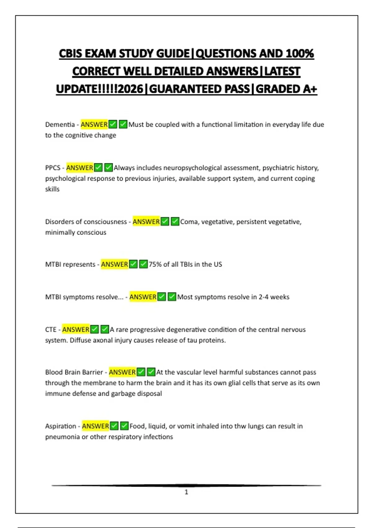 CBIS EXAM STUDY GUIDE |QUESTIONS AND 100% CORRECT WELL DETAILED ANSWERS|LATEST UPDATE!!!!!2026|GUARANTEED PASS|GRADED A+