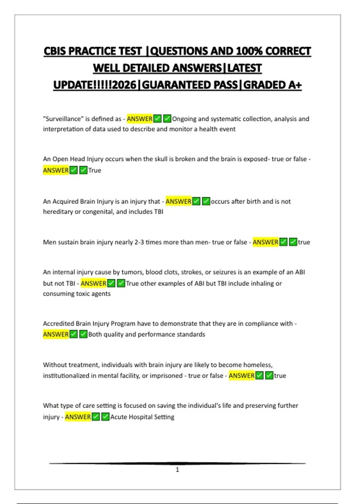 CBIS PRACTICE TEST |QUESTIONS AND 100% CORRECT WELL DETAILED ANSWERS|LATEST UPDATE!!!!!2026|GUARANTEED PASS|GRADED A+