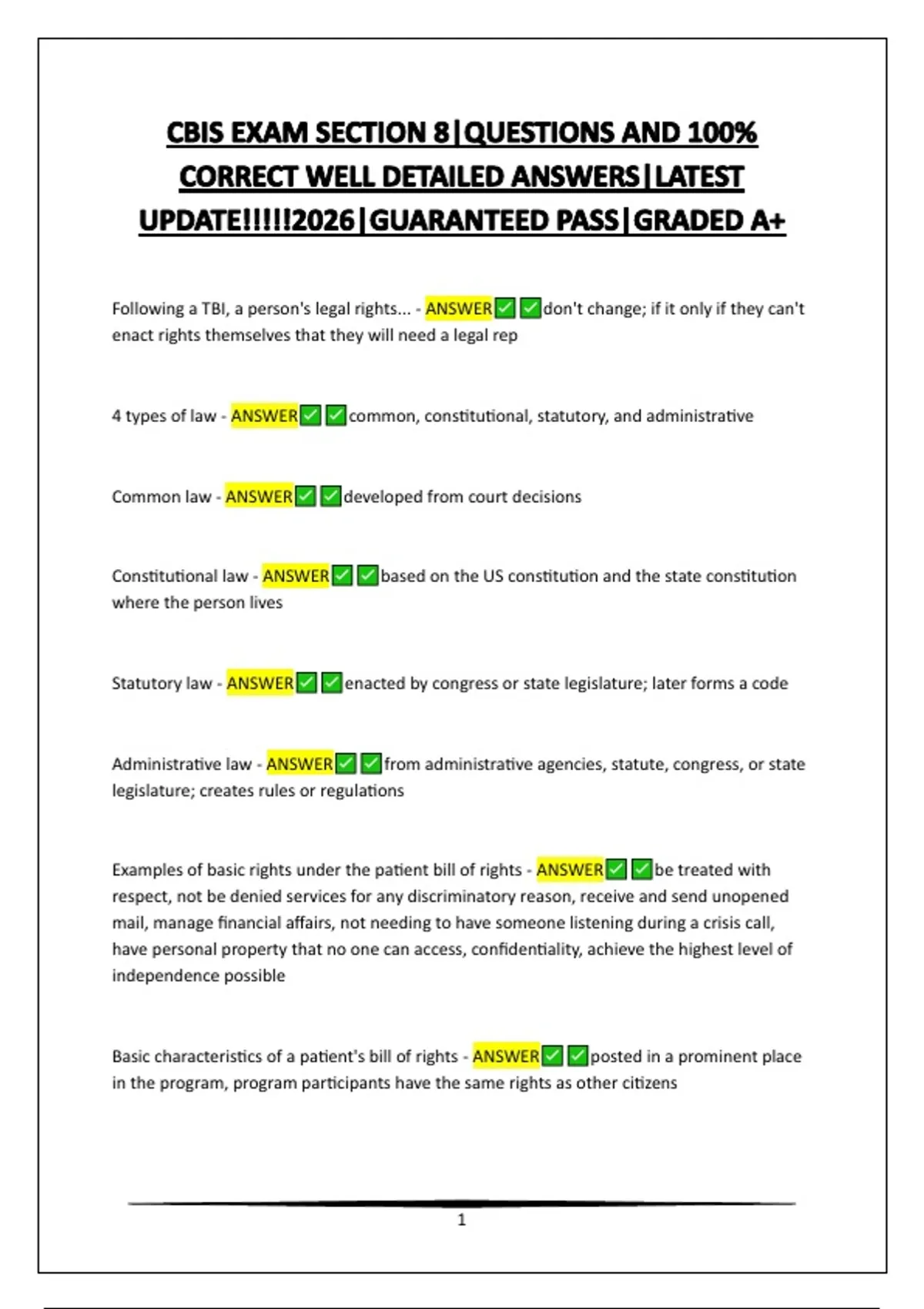 CBIS EXAM SECTION 8|QUESTIONS AND 100% CORRECT WELL DETAILED ANSWERS|LATEST UPDATE!!!!!2026|GUARANTEED PASS|GRADED A+
