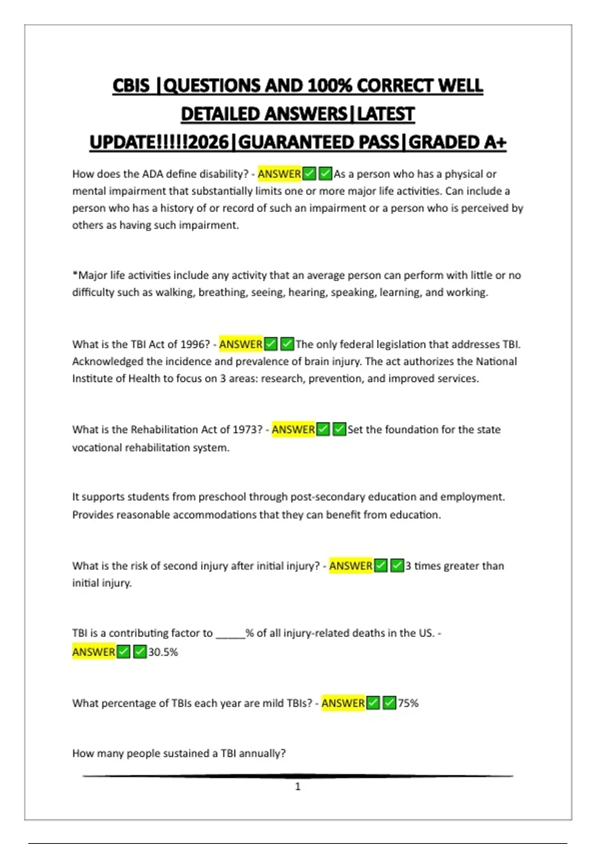 What is the TBI Act of 1996? - ANSWER The only federal legislation that addresses TBI.