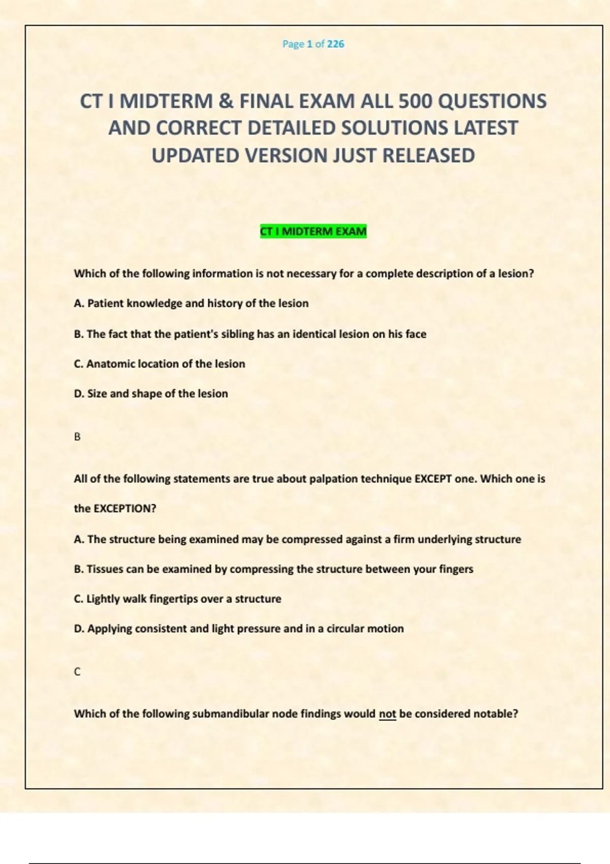 CT I MIDTERM & FINAL EXAM ALL 500 QUESTIONS