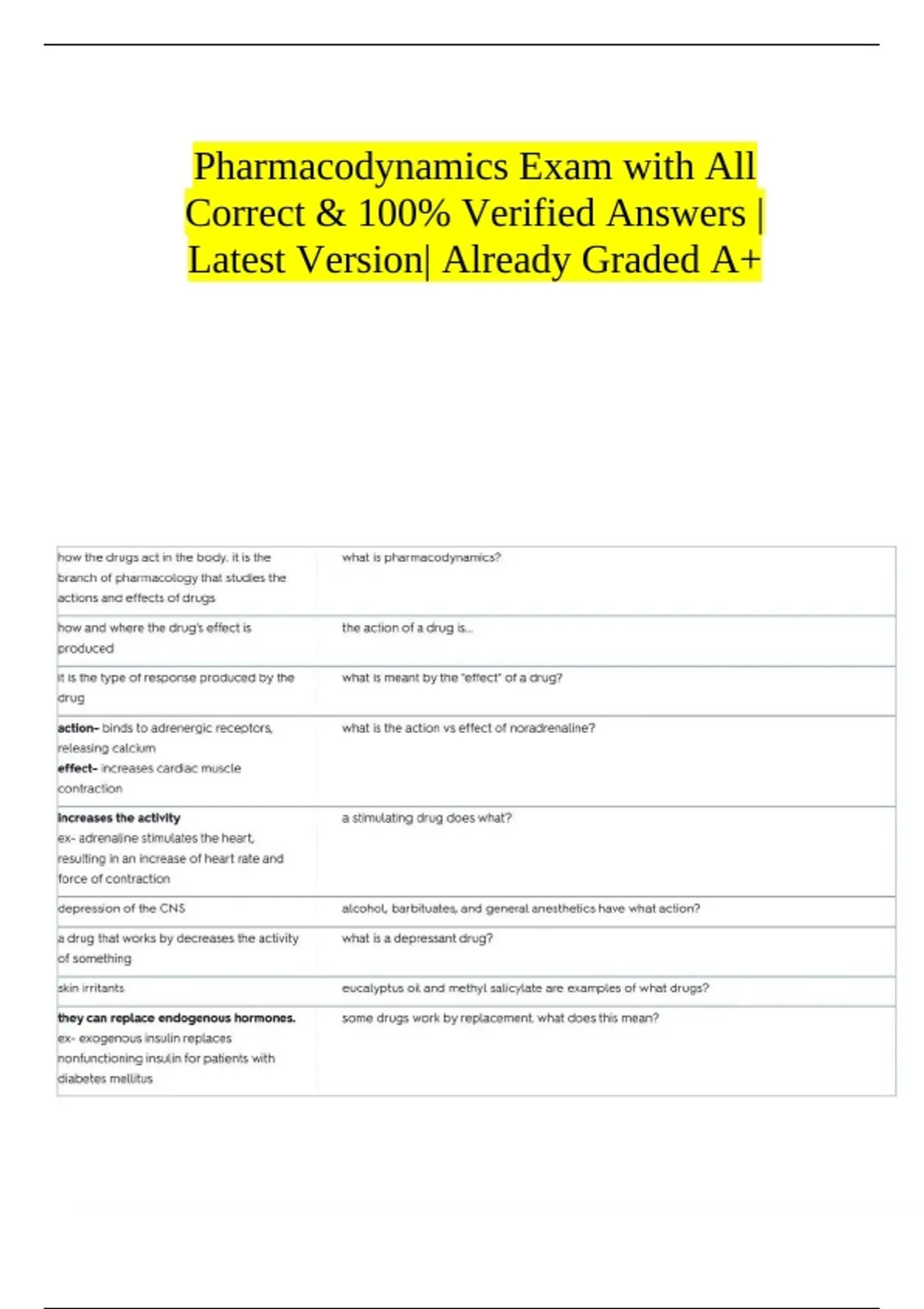 Pharmacodynamics Exam with All Correct & 100% Verified Answers |Latest Version| Already Graded A+