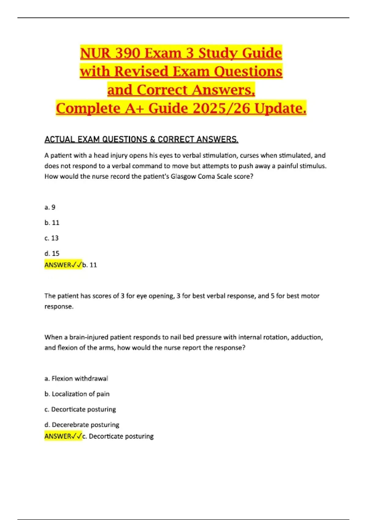 NUR 390 Exam 3 Study Guide with Revised Exam Questions and Correct Answers, Complete A+ Guide 2025/26 Update. NUR 390 Exam 3 Study Guide with Revised Exam Questions and Correct Answers, Complete A+ Guide 2025/26 Update. NUR 390 Exam 3 Study Guide with Revised Exam Questions and Correct Answers, Complete A+ Guide 2025/26 Update.
