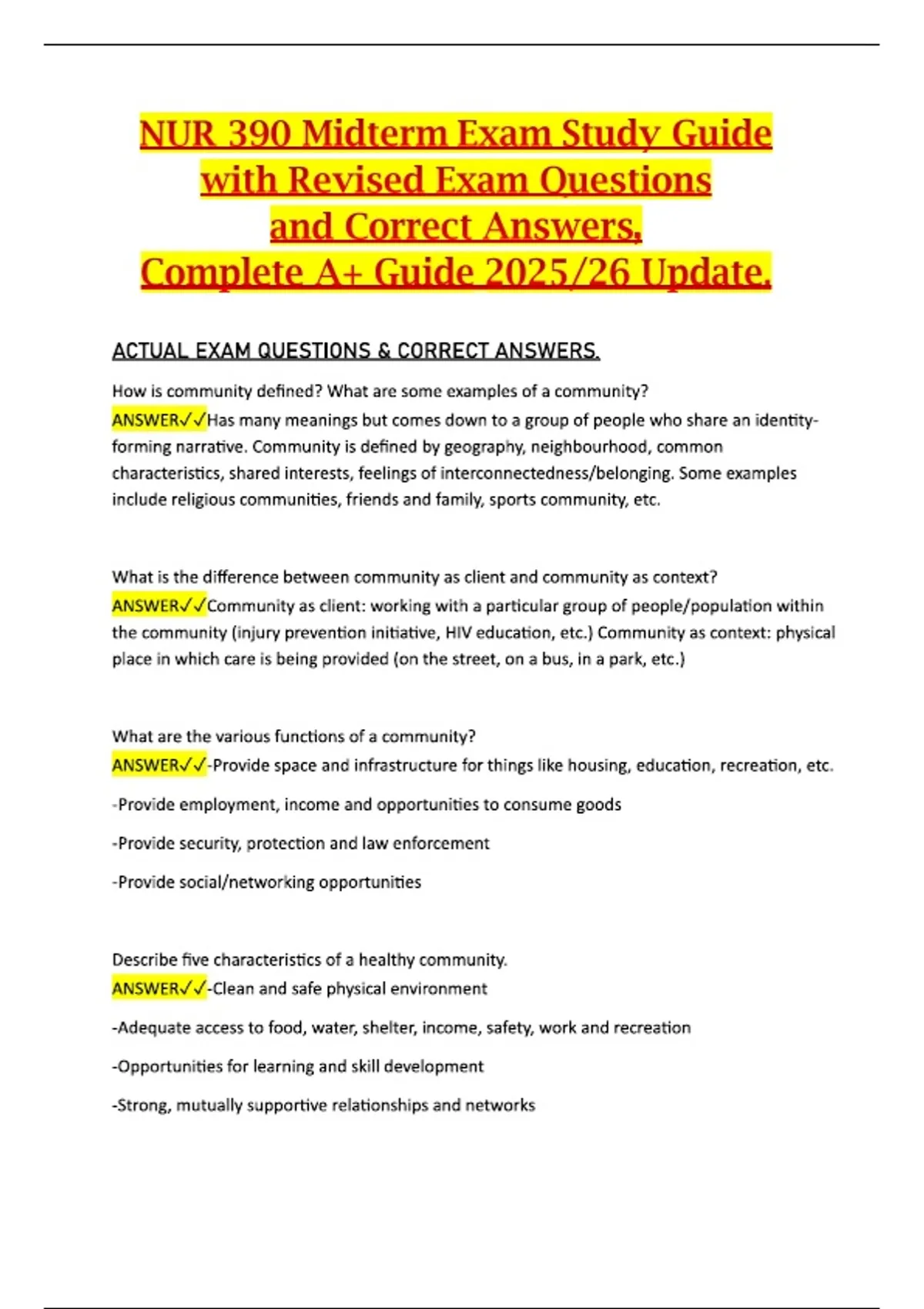 NUR 390 Midterm Exam Study Guide with Revised Exam Questions and Correct Answers, Complete A+ Guide 2025/26 Update.