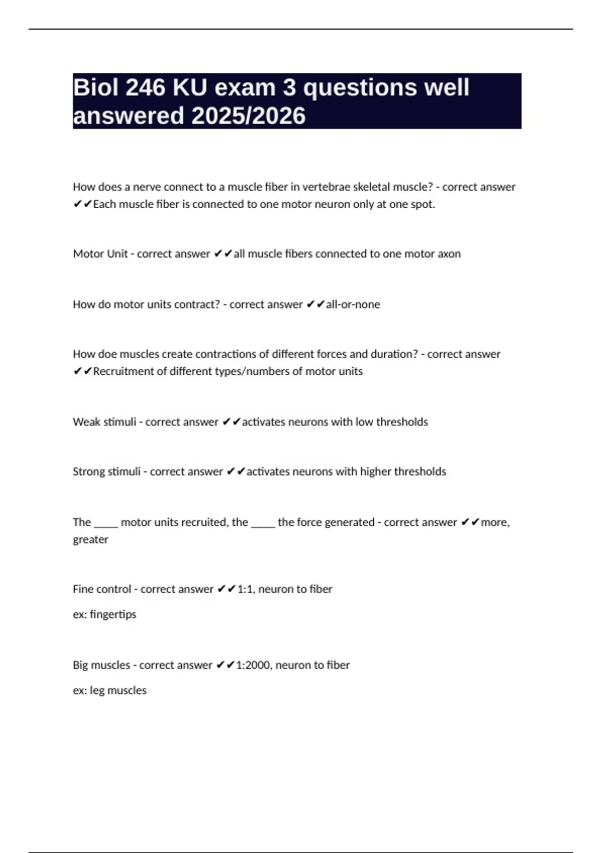 Big muscles - correct answer ✔✔1:2000, neuron to fiber