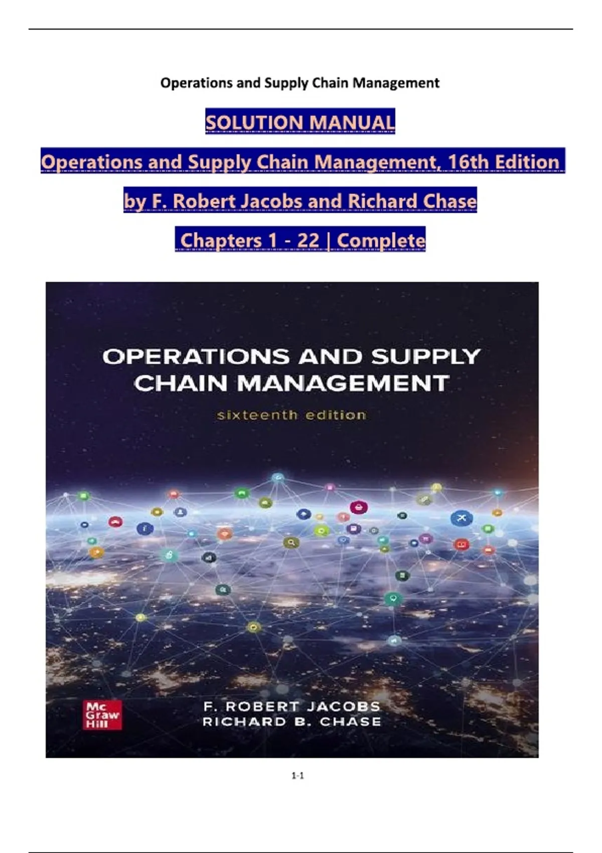 Solution Manual For Operations and Supply Chain Management, 16th Edition by F. Robert Jacobs and Richard Chase, ISBN:9781260575941, Chapters 1 - 22