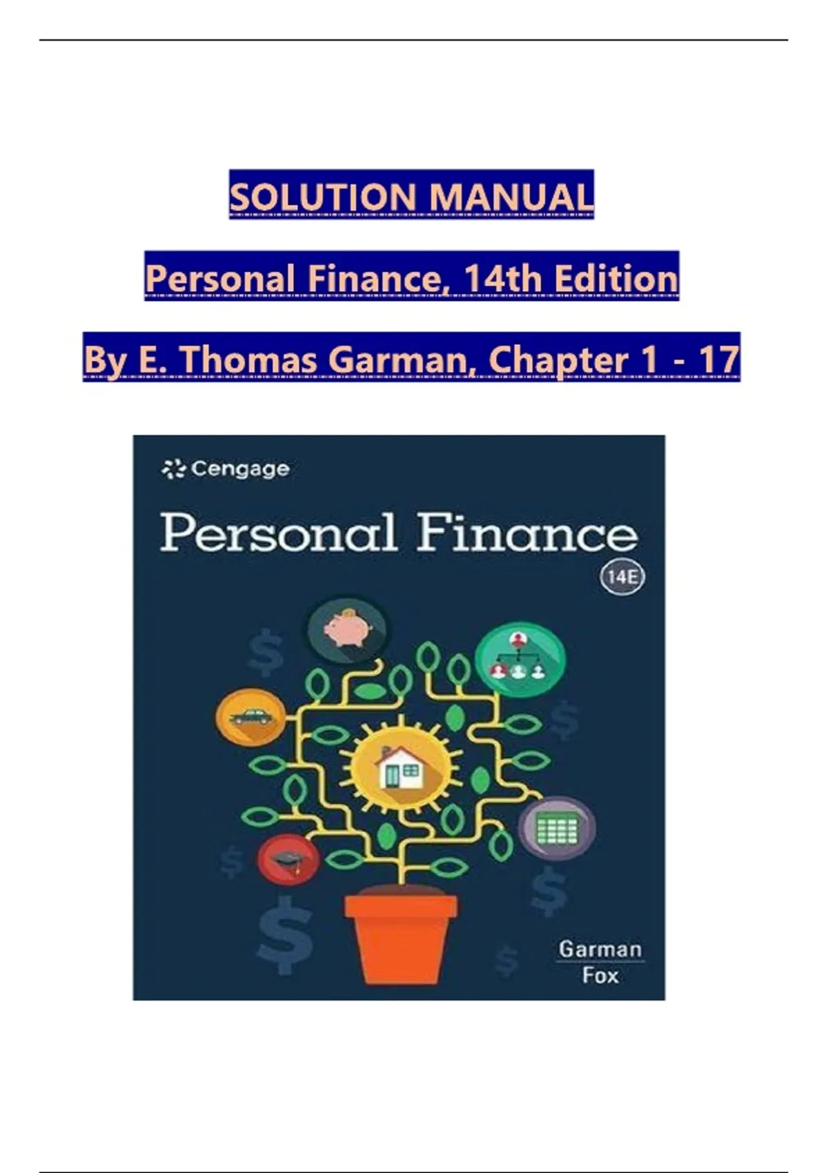 Solution Manual for Personal Finance, 14th Edition by E. Thomas Garman, Raymond E Forgue, ISBN:9780357901496 Chapters 1 - 17, Complete