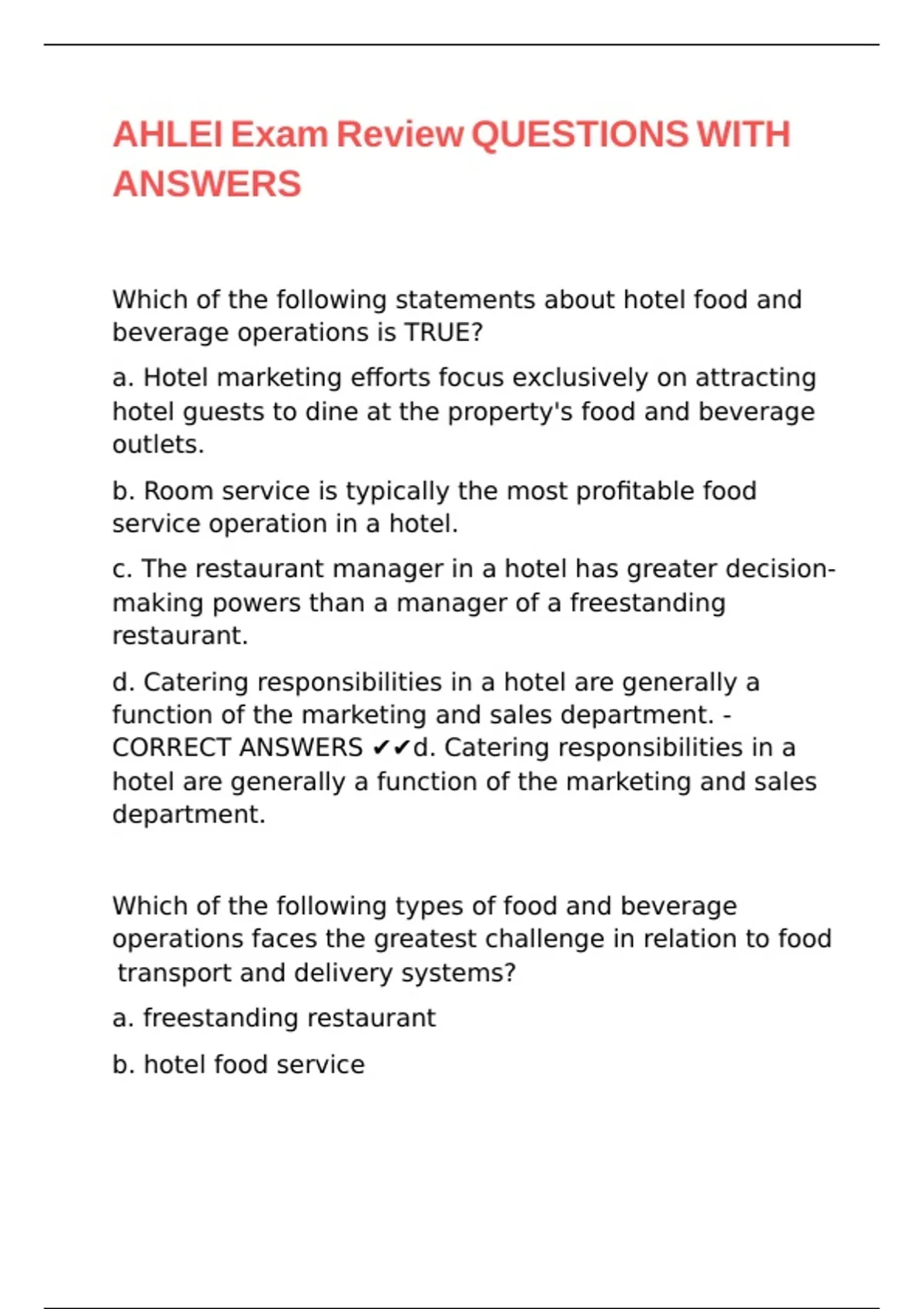 CORRECT ANSWERS ✔✔d. Catering responsibilities in a