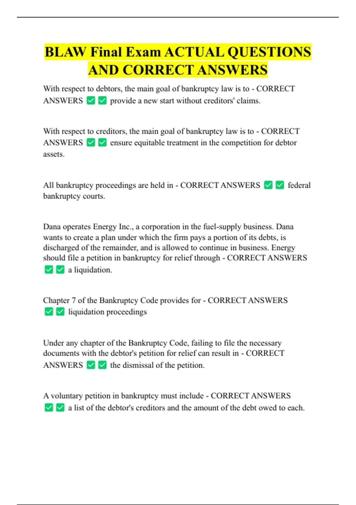 Chapter 7 of the Bankruptcy Code provides for - CORRECT ANSWERS