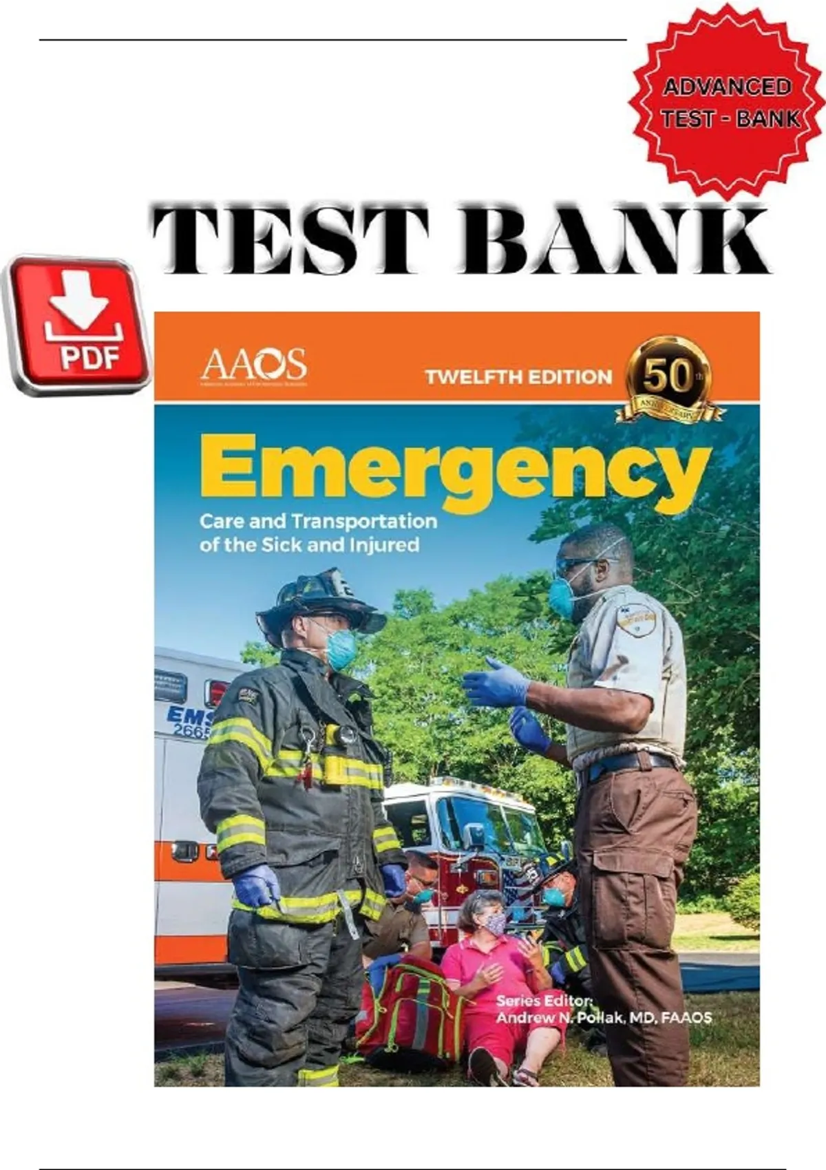 FULL TEST BANK – Emergency Care and Transportation of the Sick and Injured, Twelfth Edition (AAOS; Series Editor Andrew N. Pollak) | Complete Chapters 1–40 EMT-Level MCQs with Correct Answers & Rationales with case study| 2026 Updated Version.