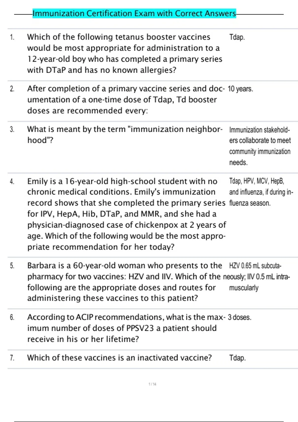 , Immunization Certification Exam with Correct Answers
