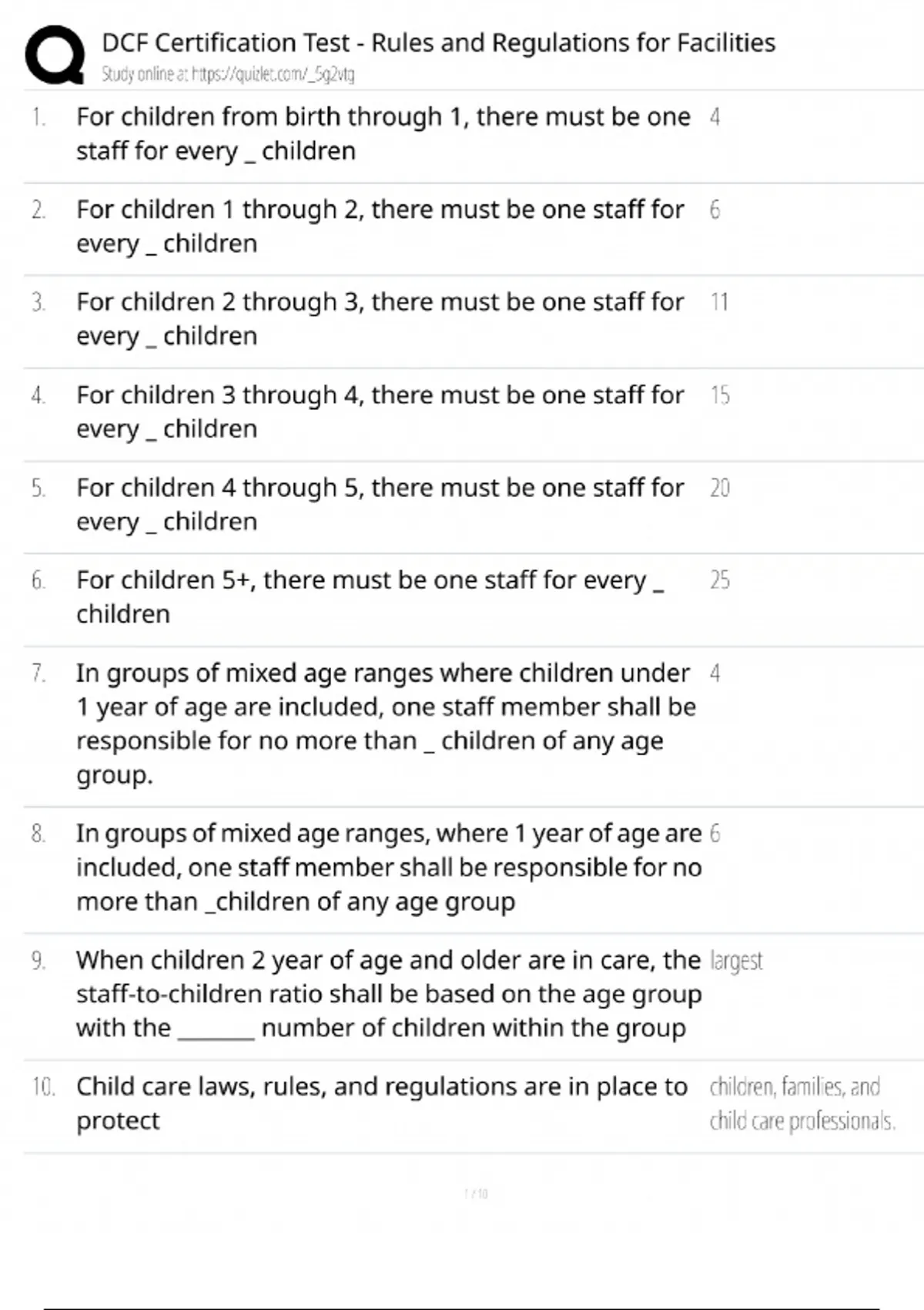 DCF Certification Test - Rules & Regulations for Facilities / Child Care Licensing / 2025 Study Guide / Score 100% / Test Bank