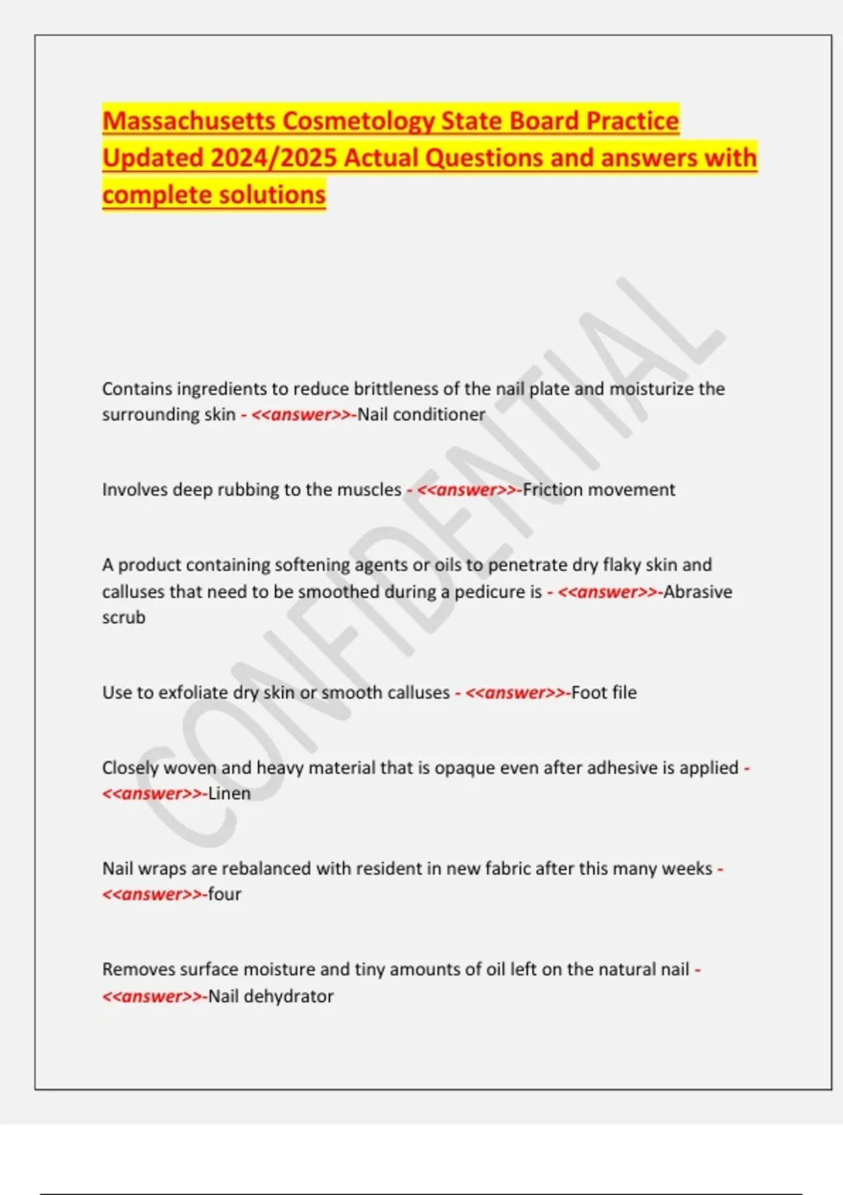 Massachusetts Cosmetology State Board Practice Updated 2024/2025 Actual Questions and answers with complete solutions