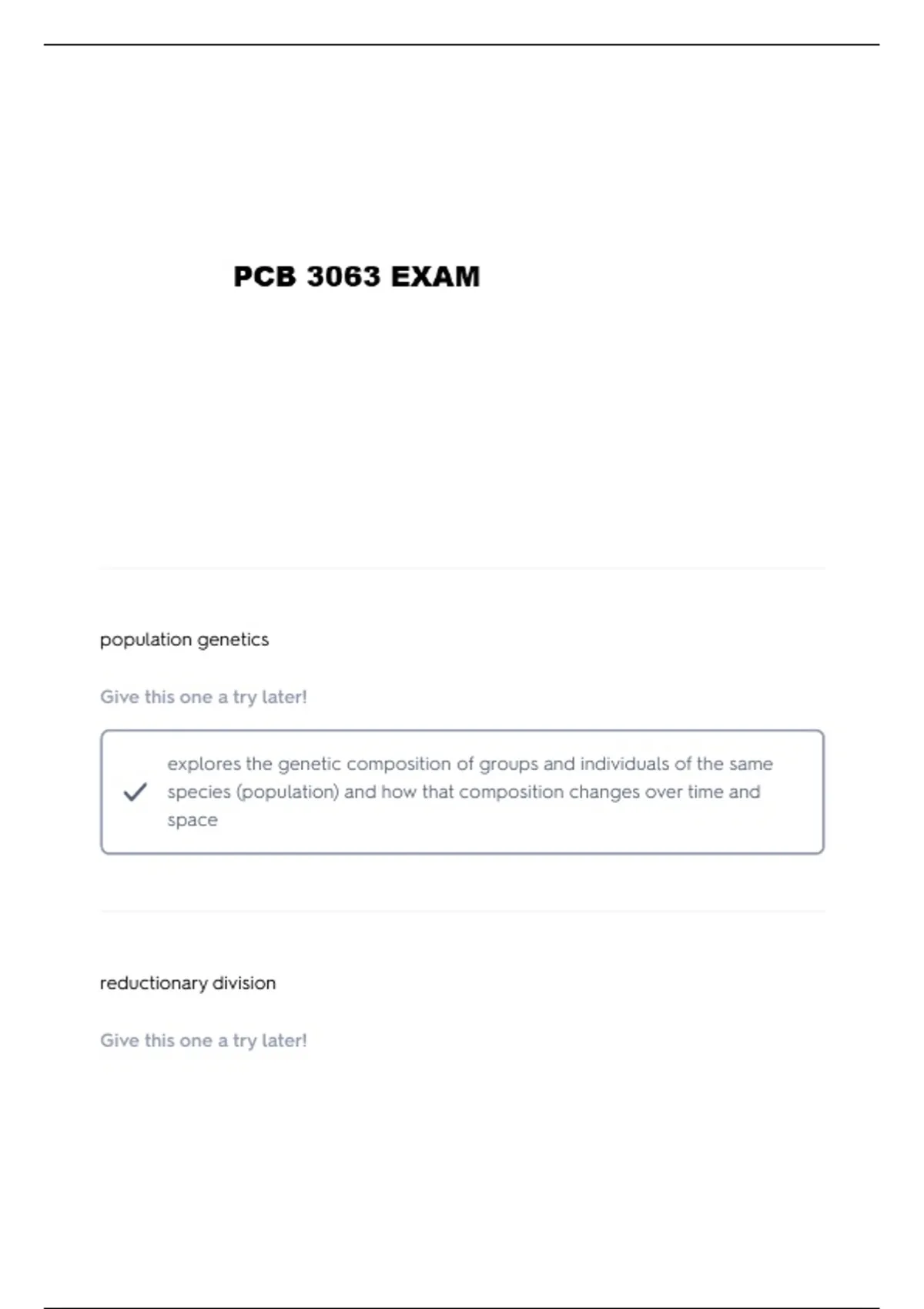 PCB 3063 EXAM 1 QUESTIONS AND VERIFIED ANSWERS