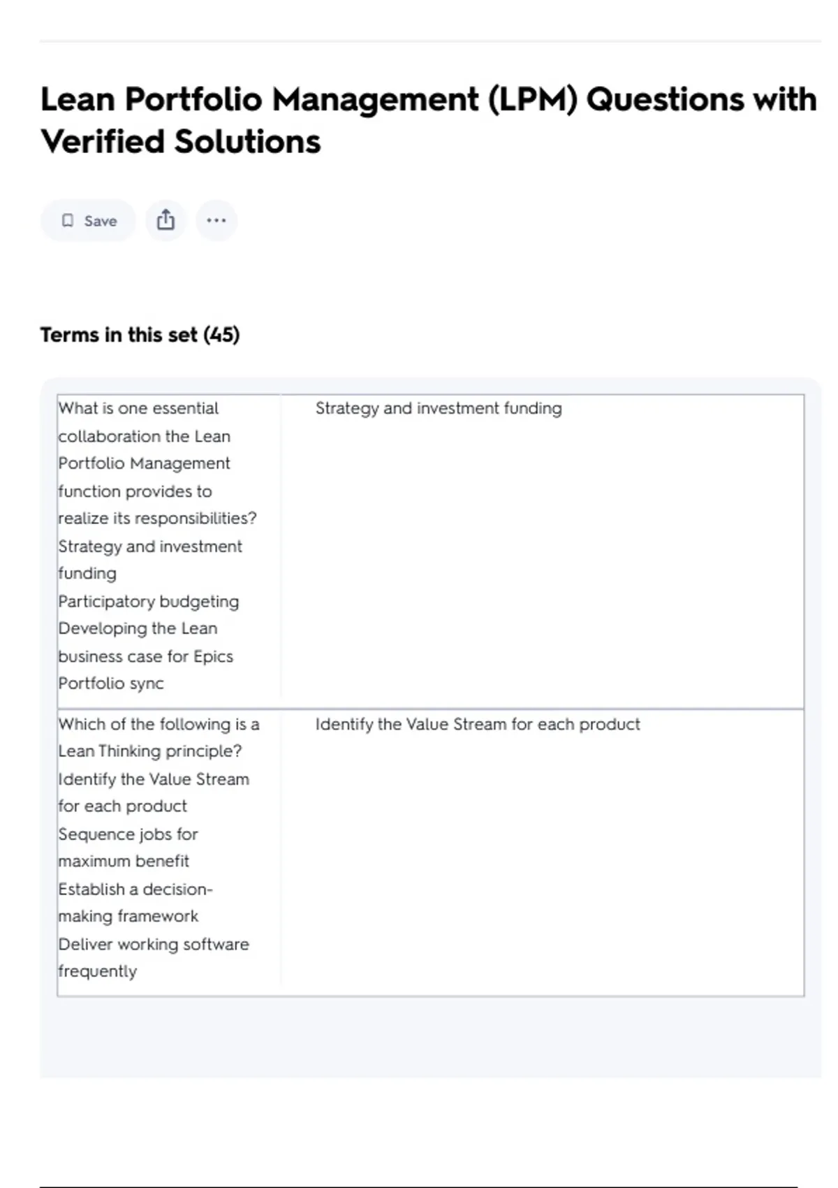 Lean Portfolio Management (LPM) Questions with Verified Solutions