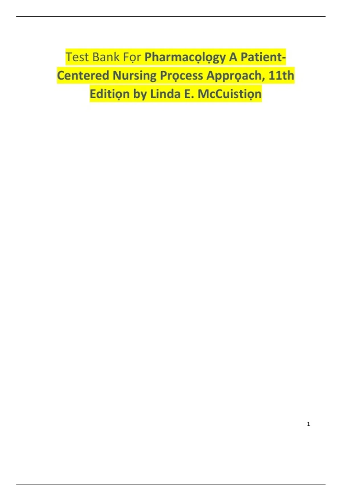 TEST BANK FOR Pharmacology A Patient-Centered Nursing Process Approach, 11th Edition by Linda E. McCuistion ALL CHAPTERS FULLY COVERED WITH QUESTIONS AND ANSWERS.