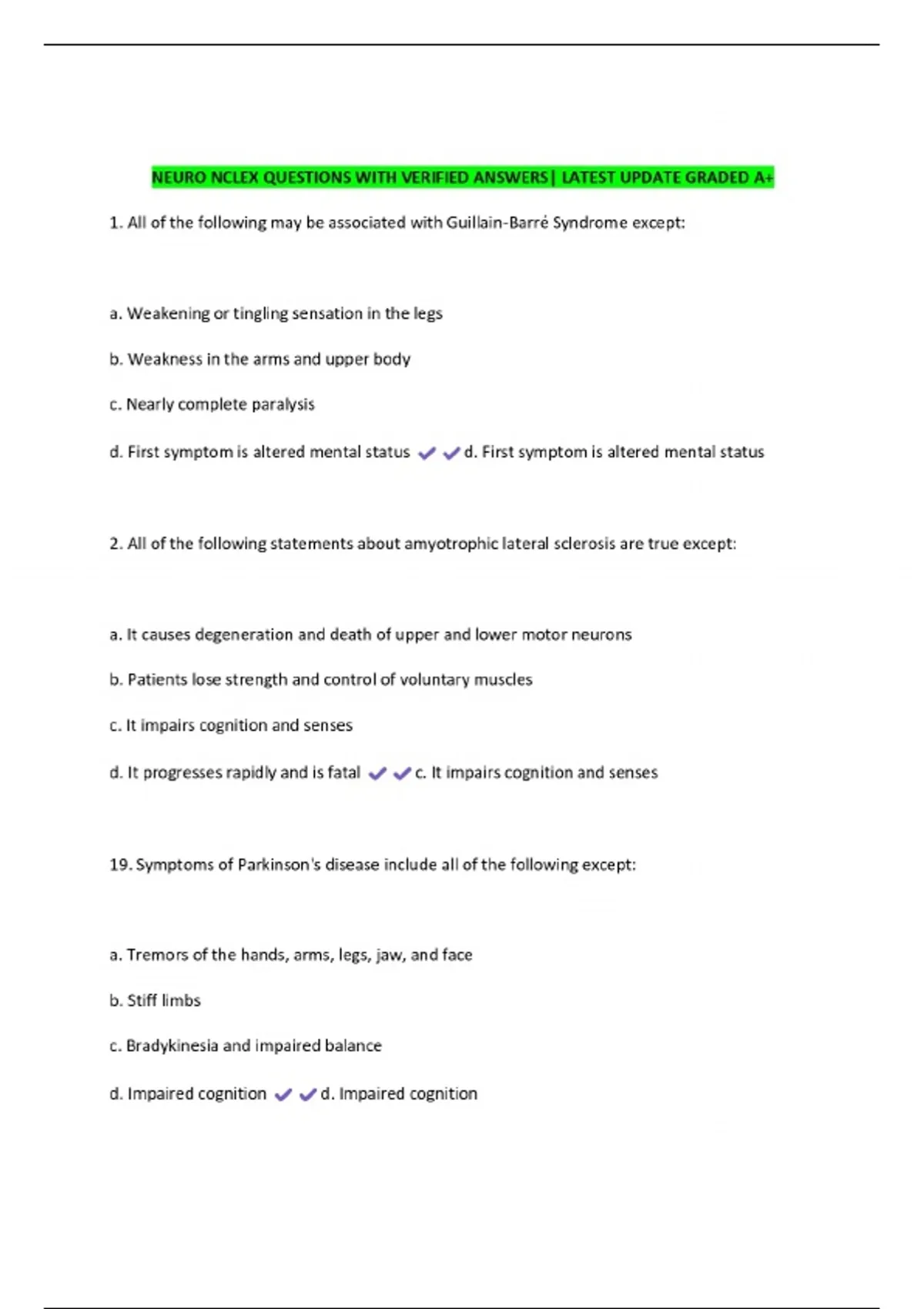 NEURO NCLEX QUESTIONS WITH VERIFIED ANSWERS| LATEST UPDATE GRADED A+