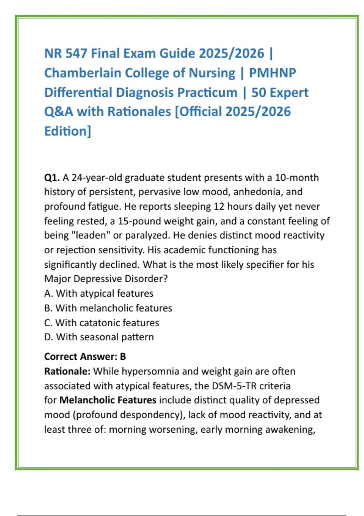 Q3. A 58-year-old woman with a history of Generalized Anxiety