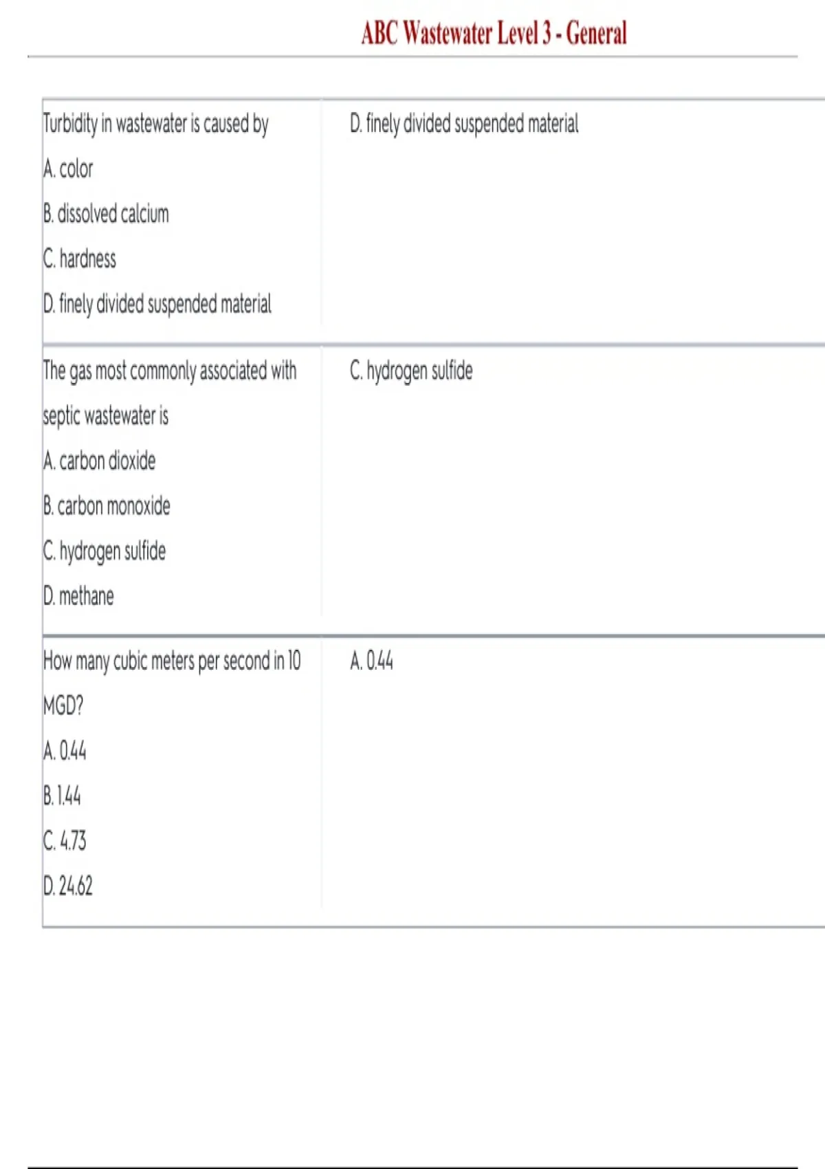 Turbidity in wastewater is caused by D. finely divided suspended material