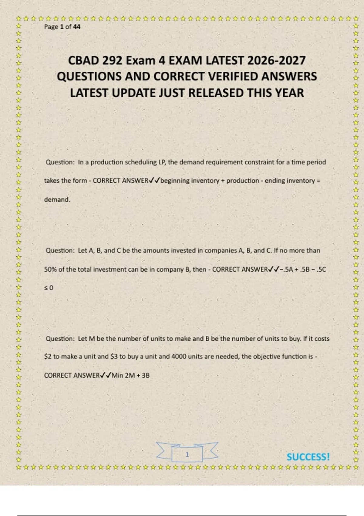CBAD 292 Exam 4 EXAM LATEST 2026-2027