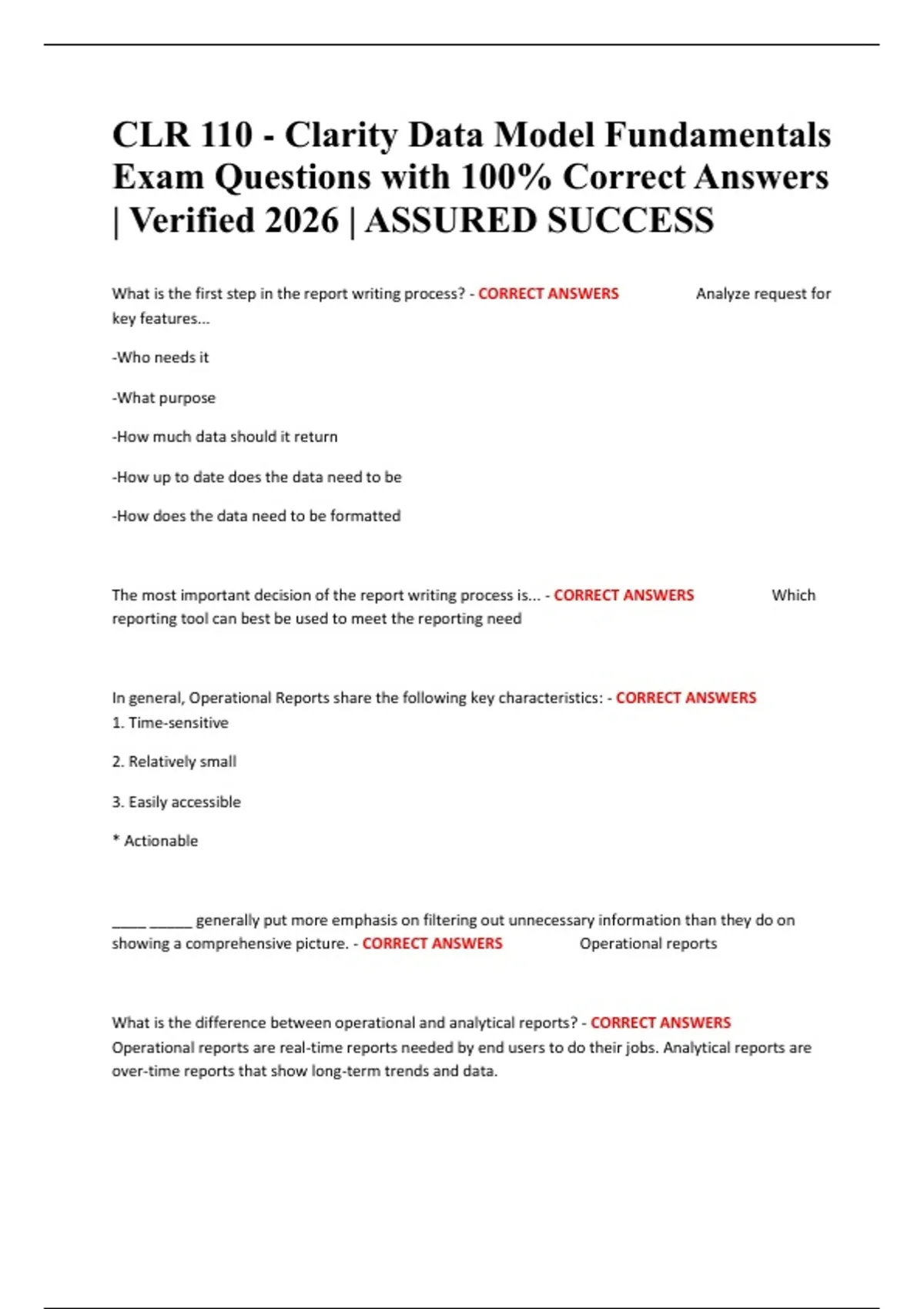 Clarity to meet this need? - CORRECT ANSWERS Not necessarily. Reporting Workbench can be