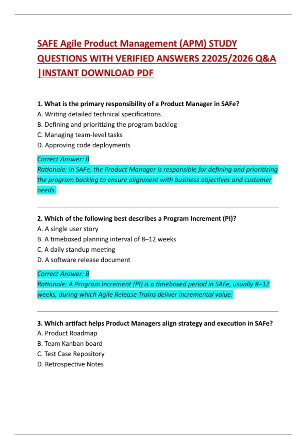 SAFe Agile Product Management – Study Guide and Exam Preparation 2025