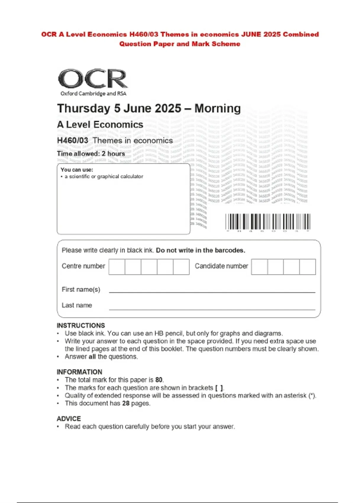 OCR A Level Economics H460/03 Themes in economics JUNE 2025 Combined Question Paper and Mark Scheme