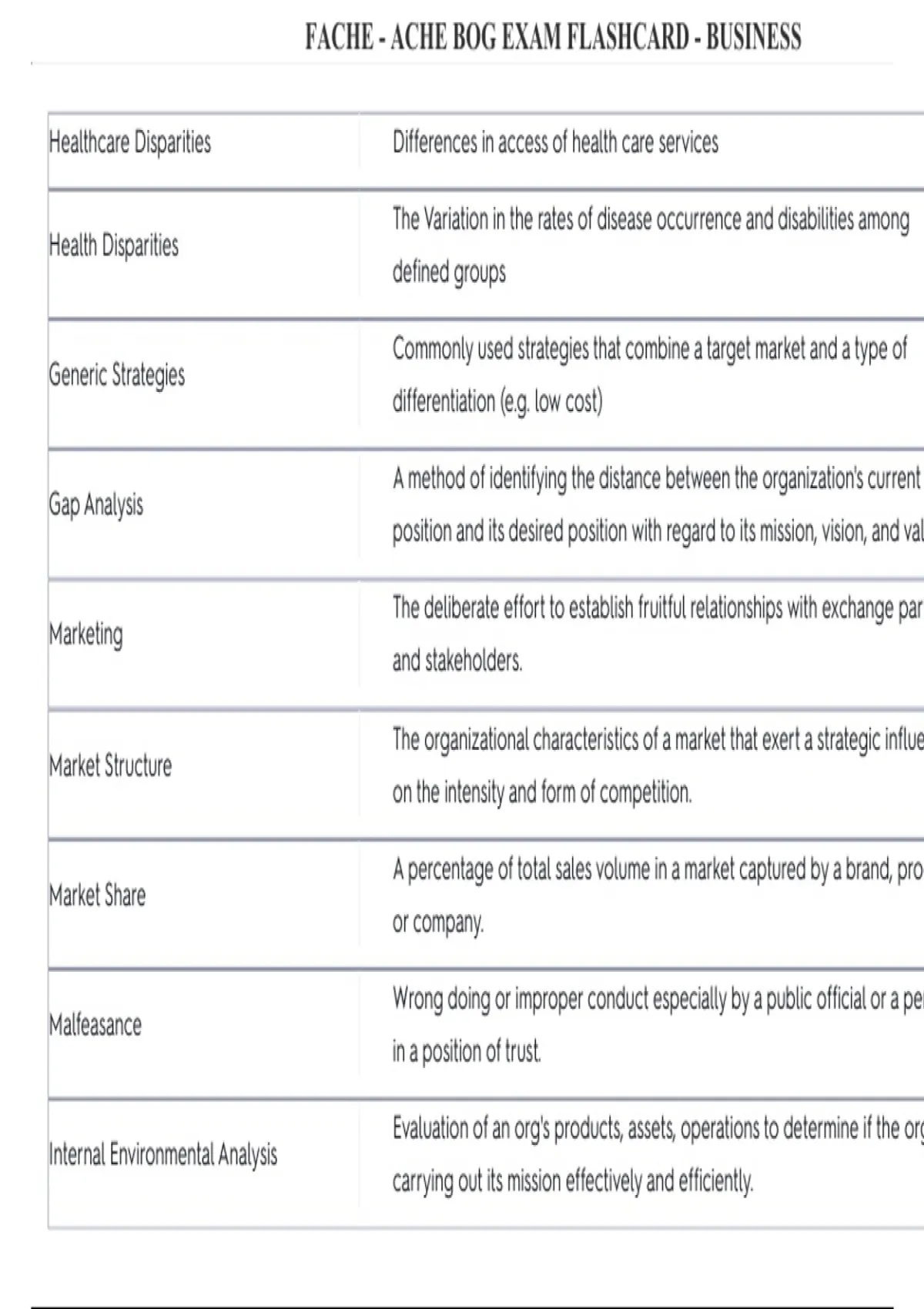 , FACHE - ACHE BOG EXAM FLASHCARD - BUSINESS