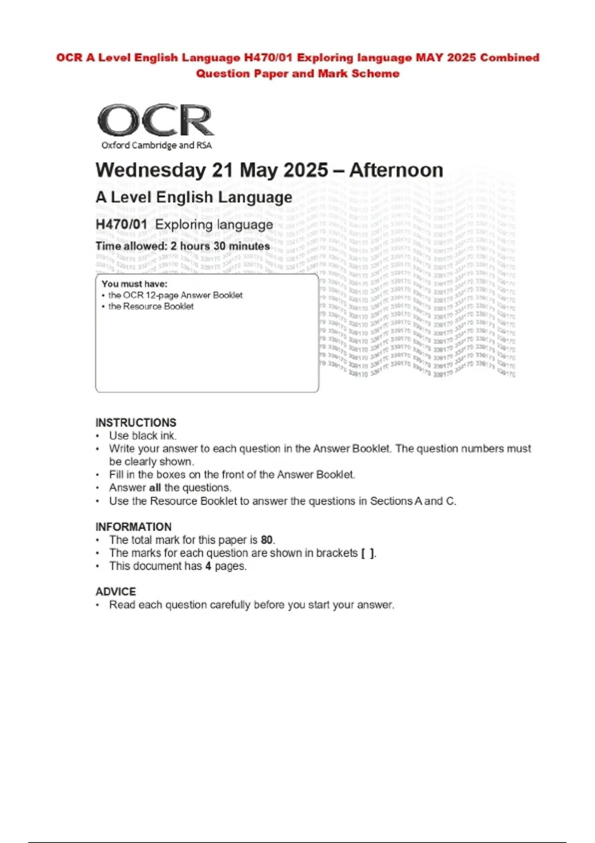 OCR A Level English Language H470/01 Exploring language MAY 2025 Combined Question Paper and Mark Scheme