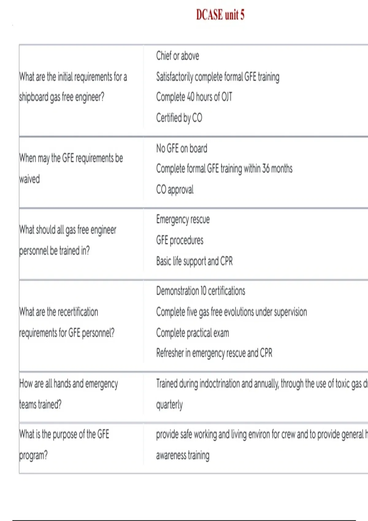 engineer, petty officer and fire marshal Complete GFPO requirements