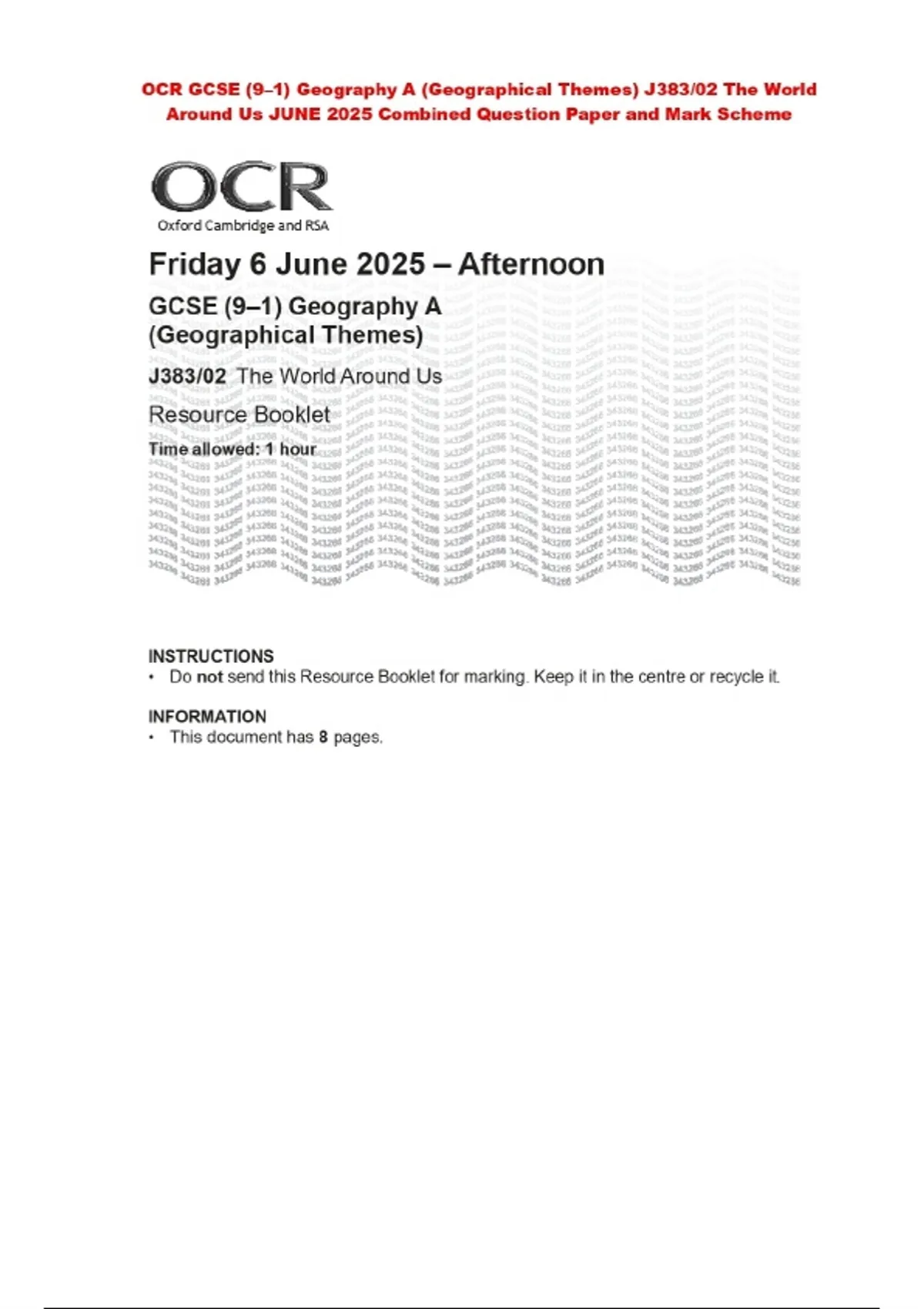 OCR GCSE (9–1) Geography A (Geographical Themes) J383/02 The World Around Us JUNE 2025 Combined Question Paper and Mark Scheme