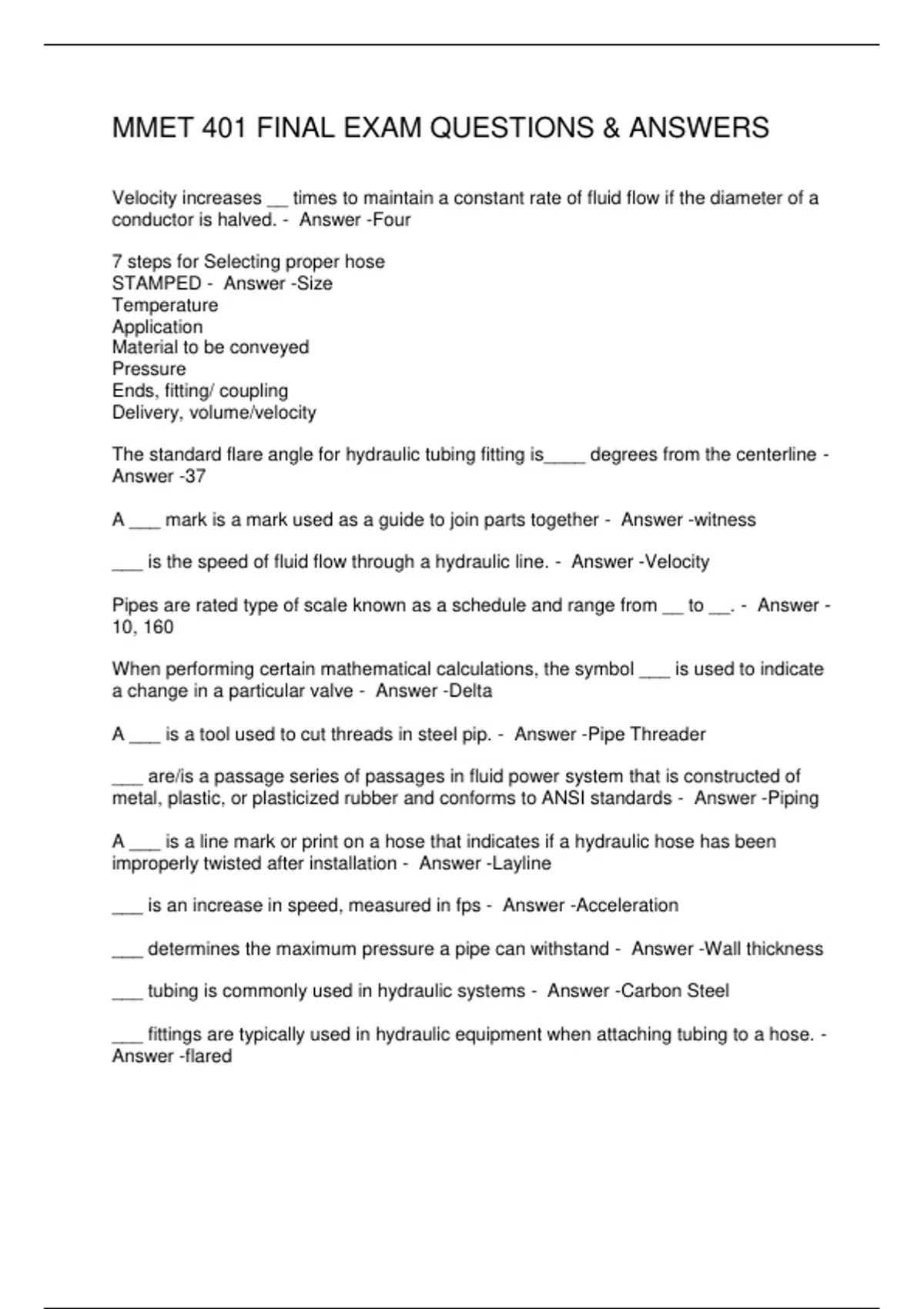 MMET 401 FINAL EXAM QUESTIONS & ANSWERS